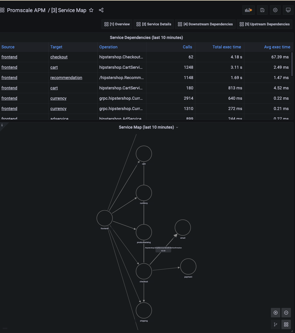 This dashboard contains service dependencies for the last 10 mins: