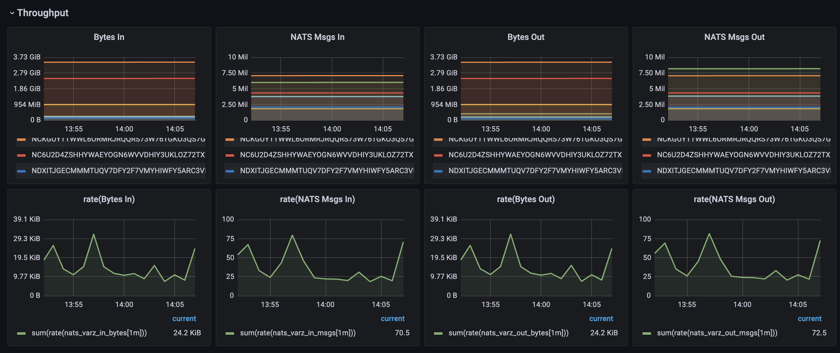 NATS Server Dashboard for use with built-in Prometheus NATS Exporter into nats official helm charts