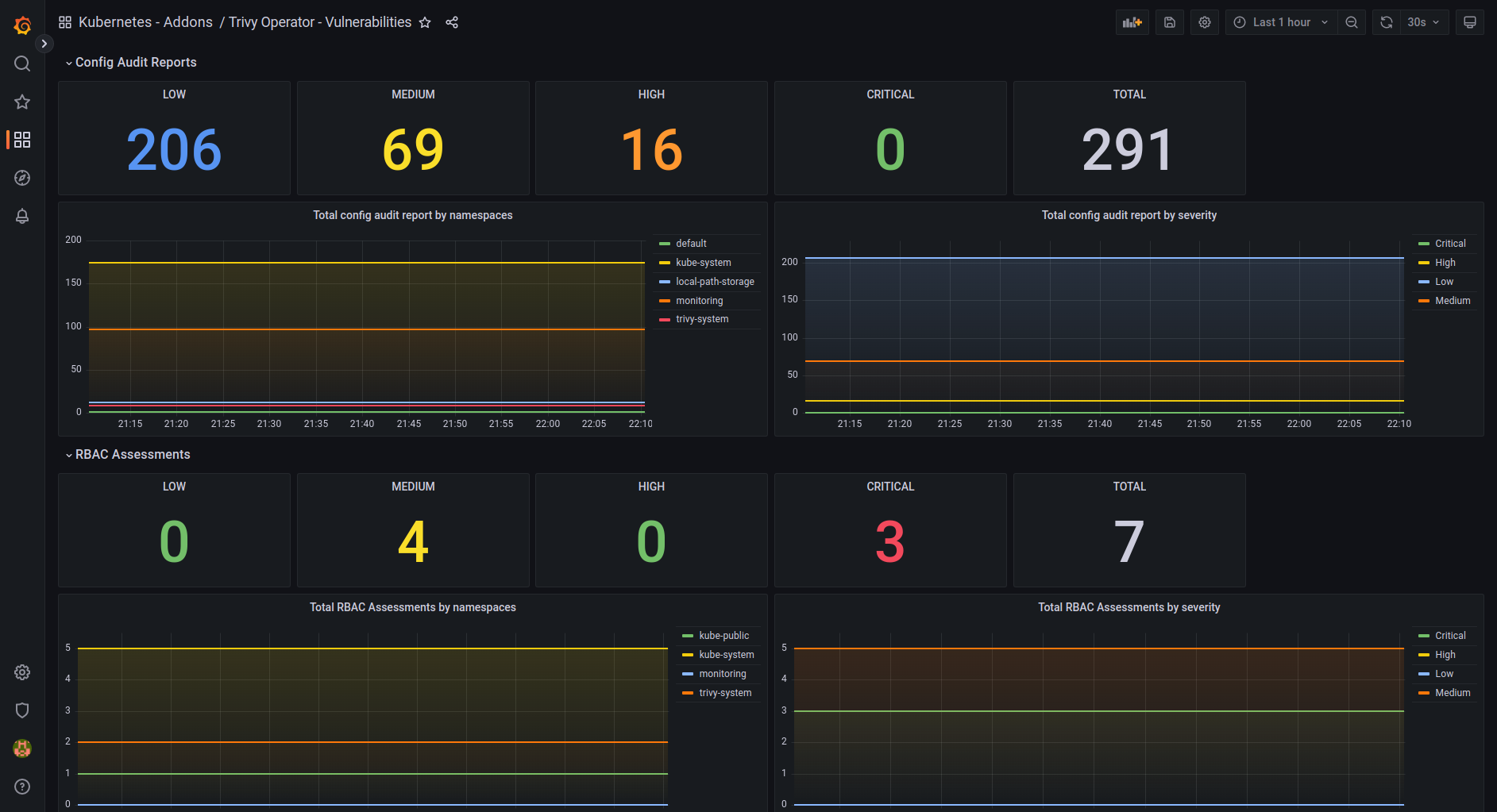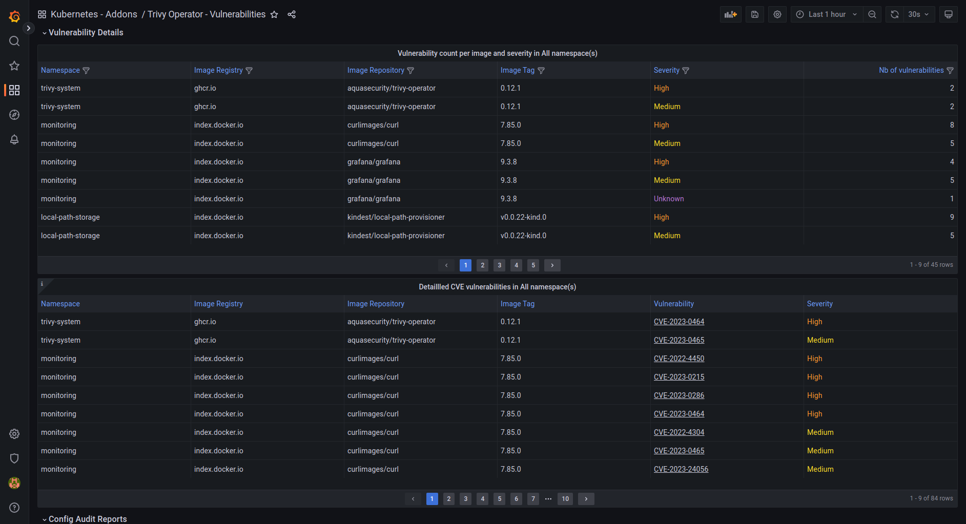This is a modern dashboard for the Trivy Operator from Aqua Security. Made to take advantage of the latest Grafana features. GitHub repository: https://github.com/dotdc/grafana-dashboards-kubernetes