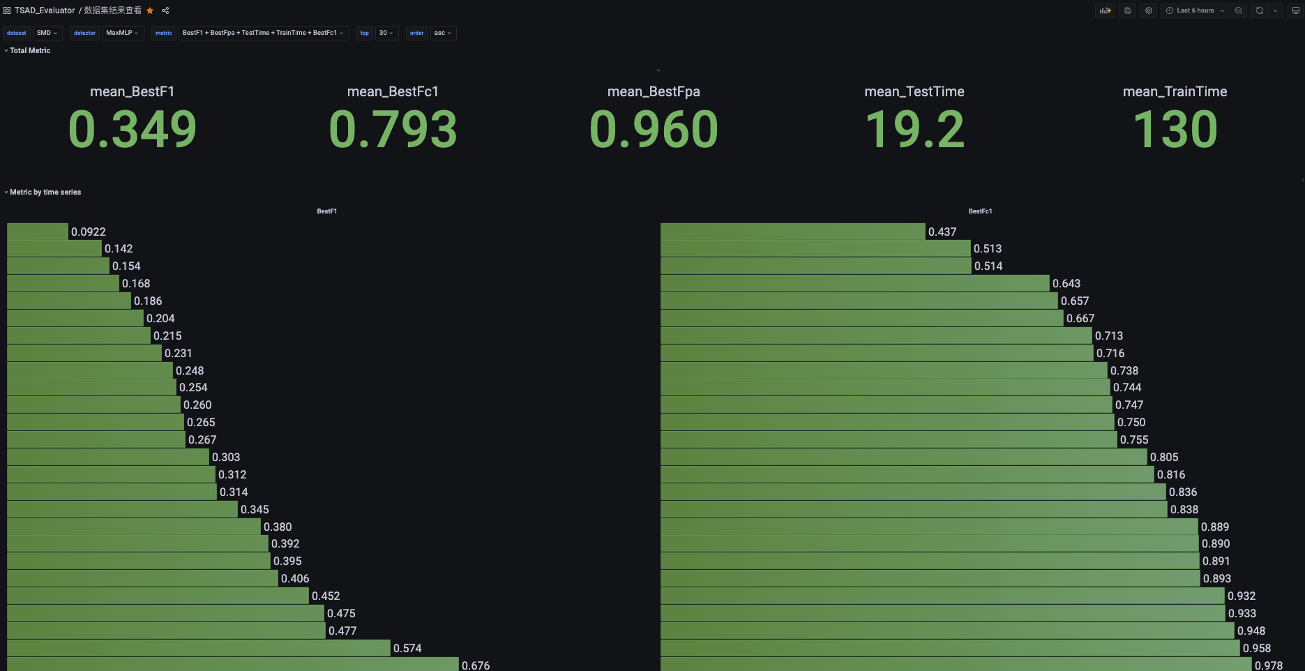 查看「选定算法」在「选定数据集」下的整体检测指标和「各个序列」的检测指标