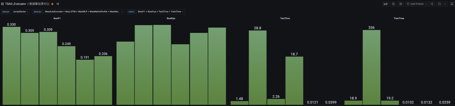 查看「多个选定算法」在「选定数据集」下的整体检测指标的对比