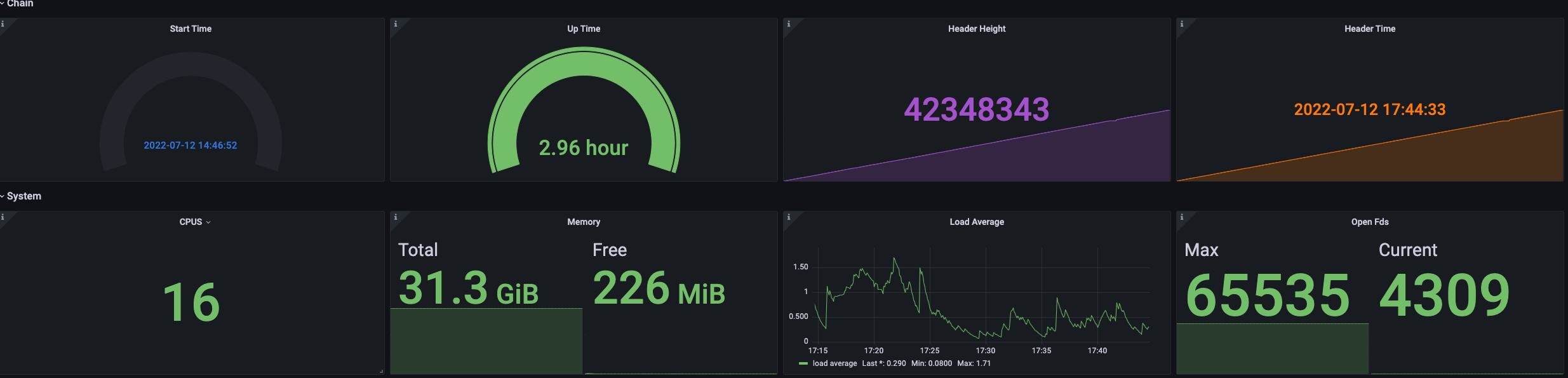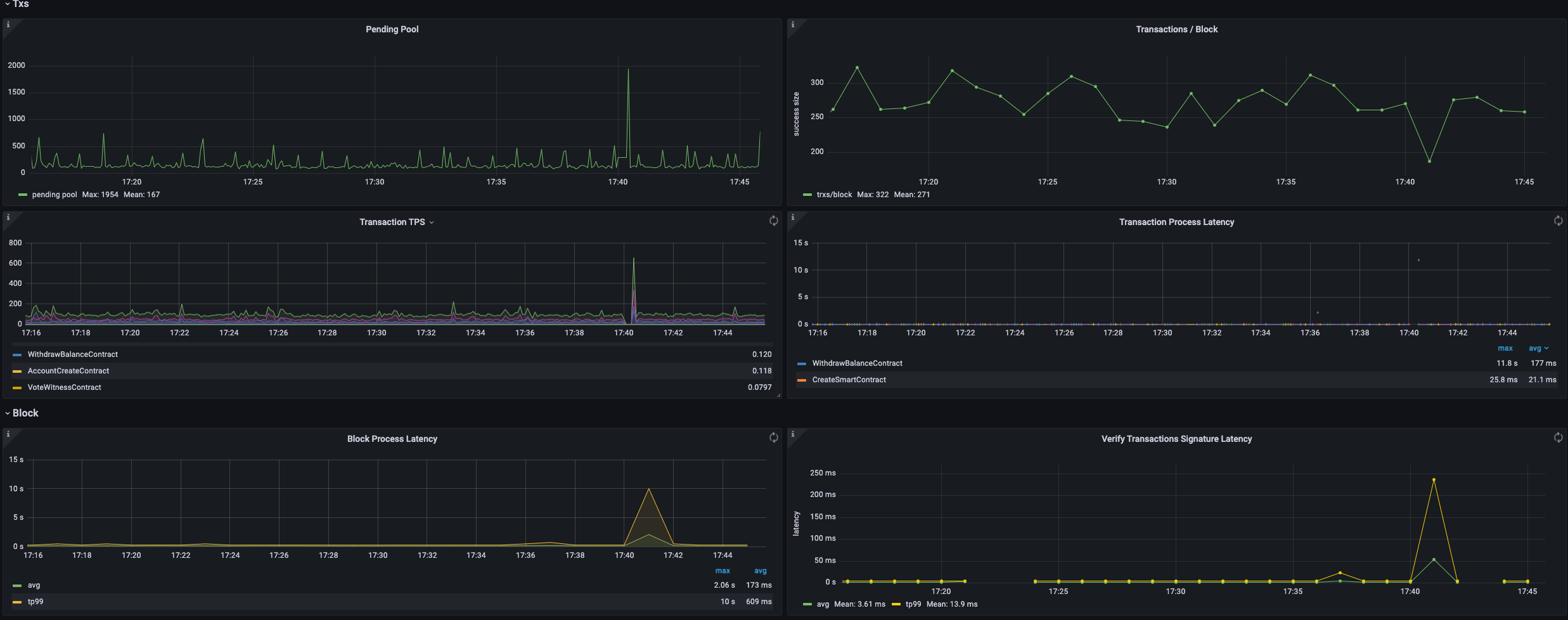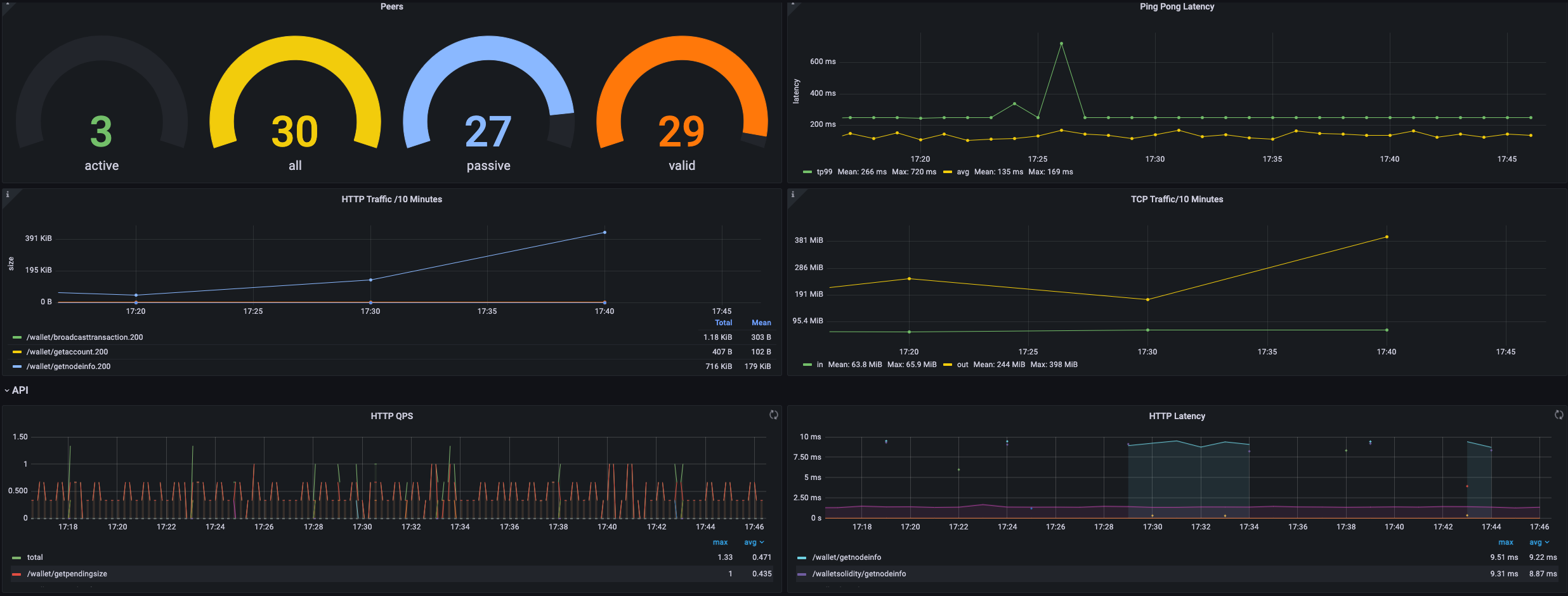 Monitor your Java Tron server and view detailed information on the current status of the blockchain. This Grafana Dashboard requires you to have a running instance of prometheus and java-tron fullNode which open metric.