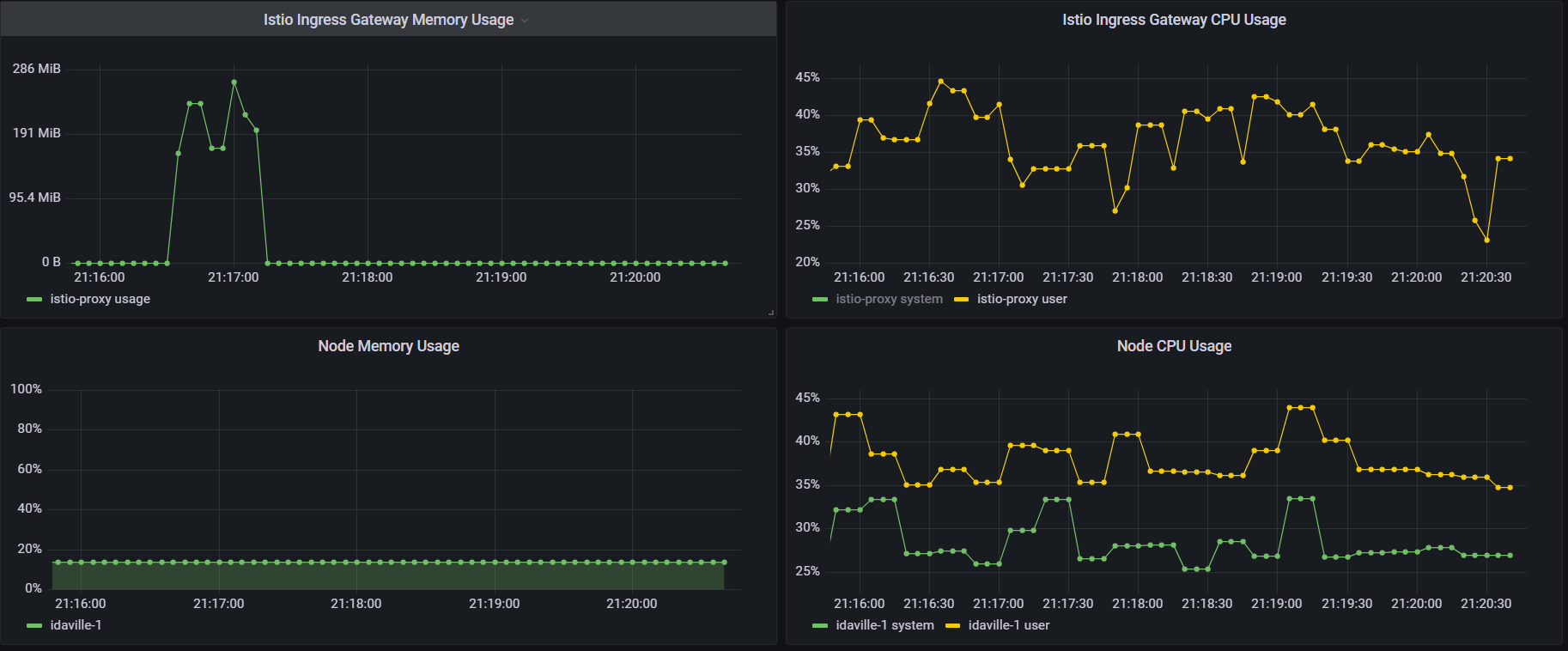 Prometheus data source includes Istiod and Envoy metric to visualize CryptoMb features. Grafana visualizes all important data of CryptoMb such as buckets utilization, envoy listener requests, envoy listener handshakes, current envoy TLS connections. In addition, the dashboard includes cpu and memory utilization graphs for Istio Ingress Gateway and Kubernetes Nodes. More info about cryptomb is in Istio documentation: https://istio.io/latest/docs/reference/config/istio.mesh.v1alpha1/#PrivateKeyProvider-CryptoMb
