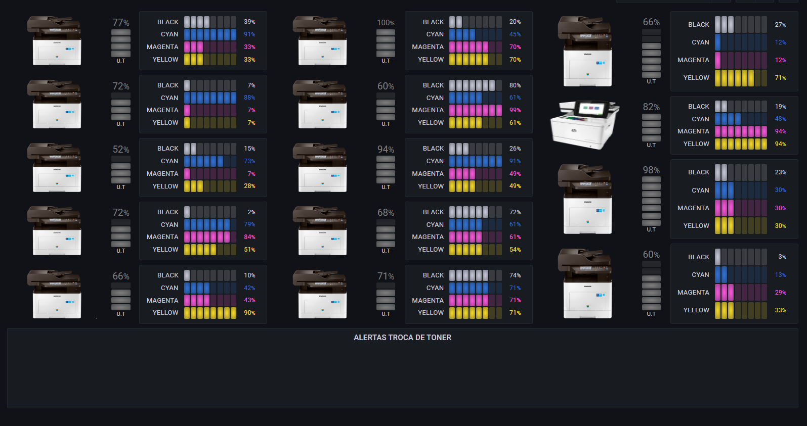 Template para monitoramento do nível de toner de impressoras coloridas. Testado em SAMSUNG 5360, 6260