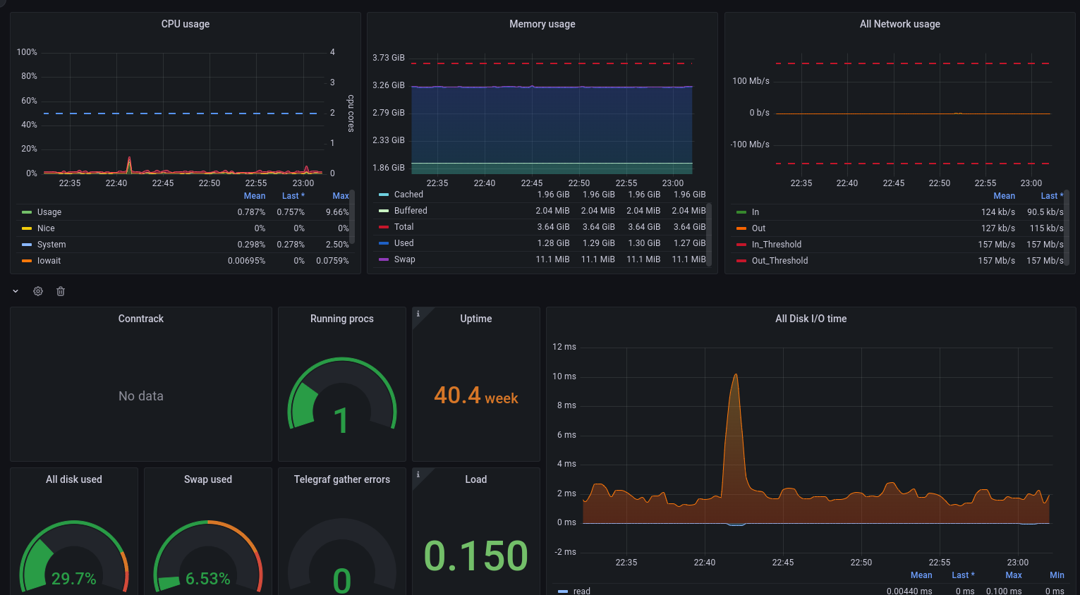 The System / General dashboard uses the prometheus data source to create a Grafana dashboard with the gauge, stat, text and timeseries panels.