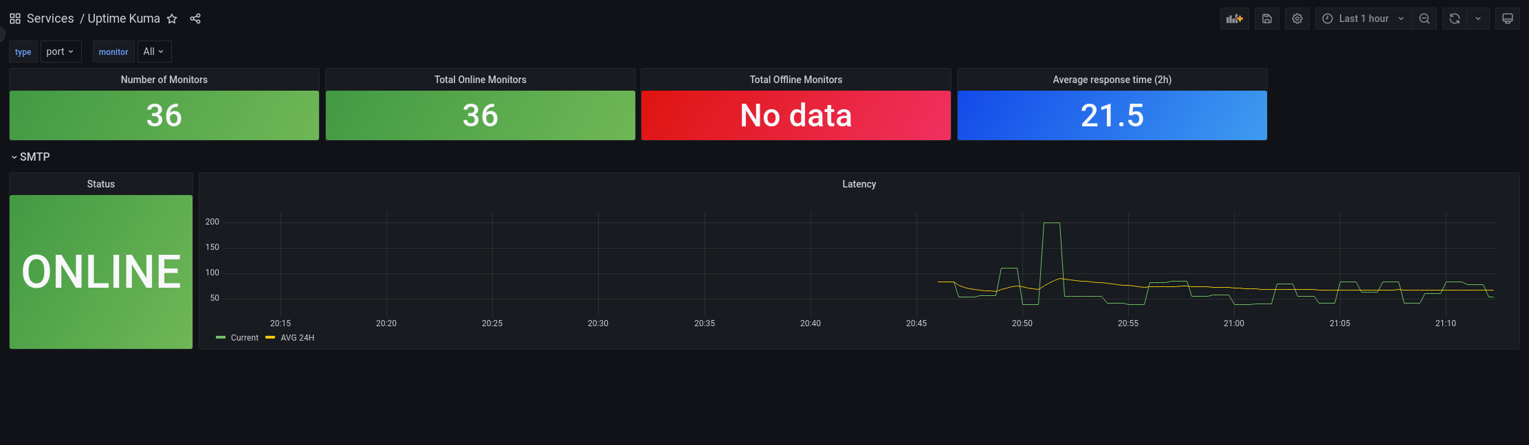 A basic dashboard to visualize the metrics from [Uptime Kuma](https://github.com/louislam/uptime-kuma)