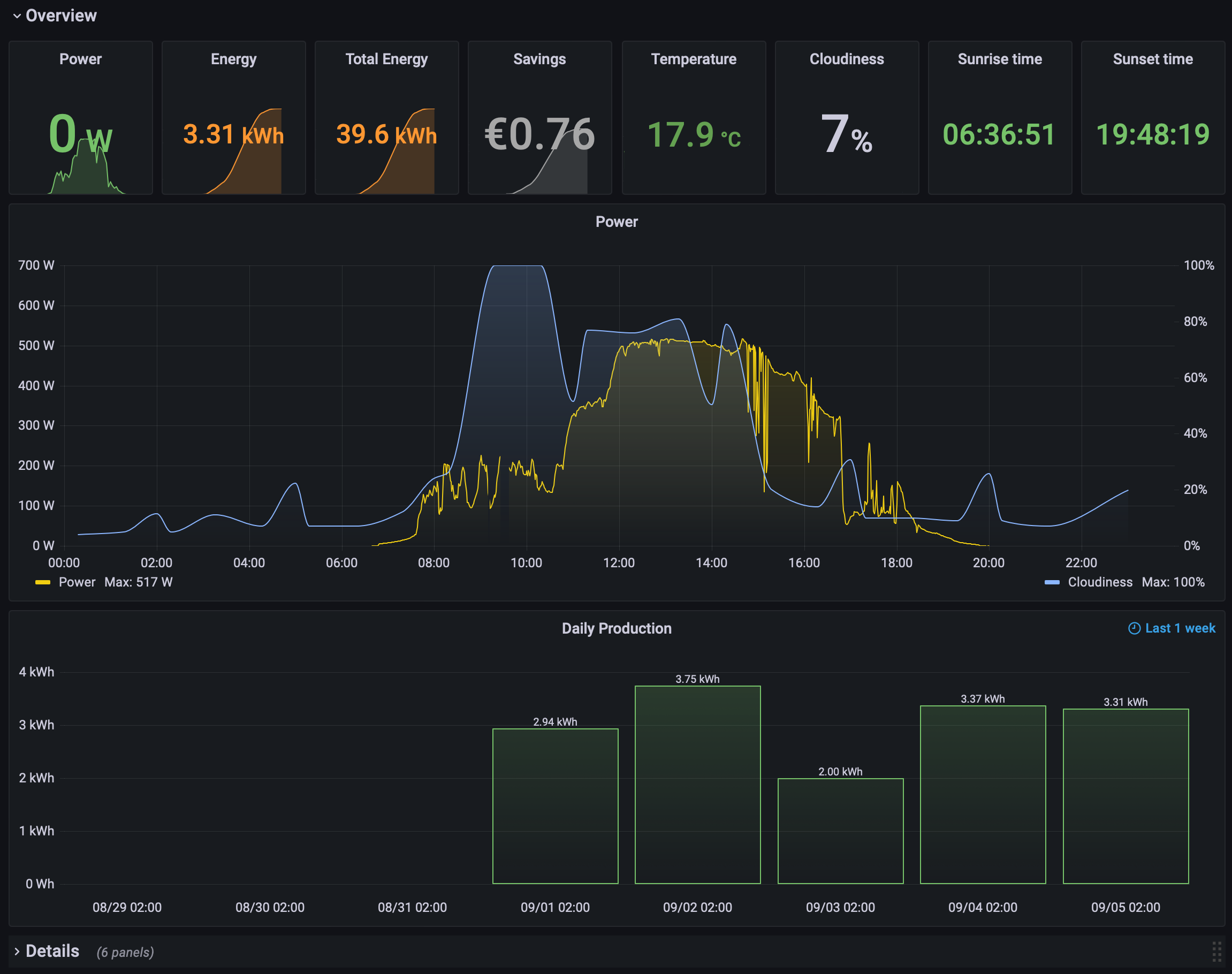- kwhPrice: Define your individual price of a kWh to calculate your potential daily savings - in case you consumed all of your produced energy.