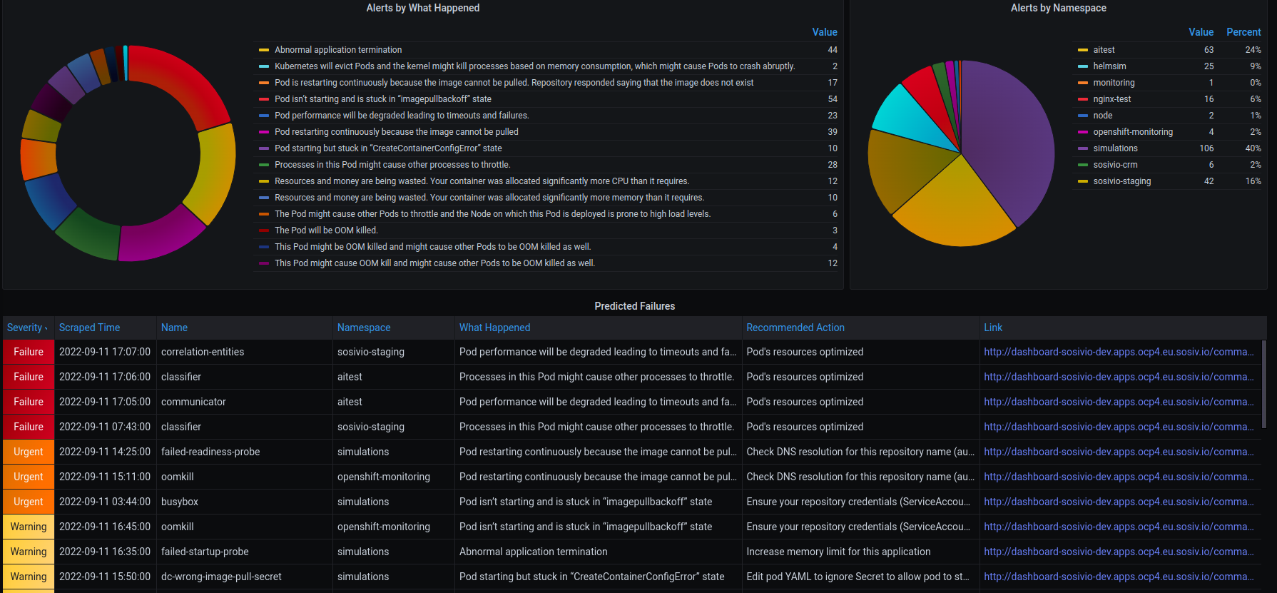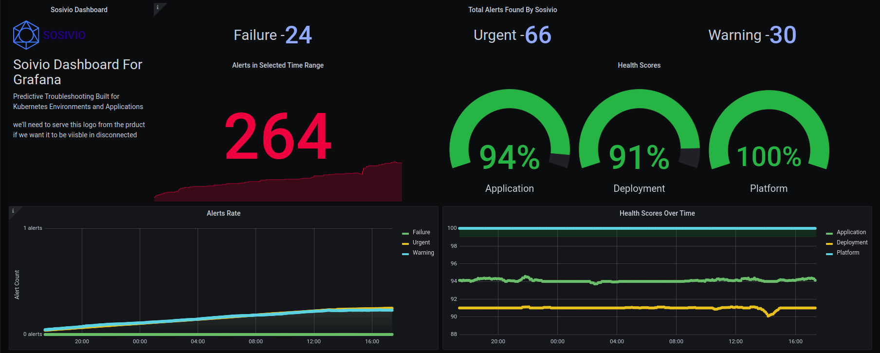 The Sosivio Dashboard for Grafana allows users to see Sosivio Failure Alerts directly in Grafana and instantly be redirected to Sosivio UI to remediate those failures. Additionally, add context around Grafana signals with Sosivio’s root cause determination for critical failures.