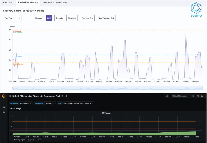 Sosivio looks at multiple layers of the infrastructure stack including the kernel, operating system, processes, network, container runtime, application logs, and Kubernetes layer. This granular data is fed through multiple AI/ML engines to determine the root cause of issues before they occur and provide instant remediation via a recommended command line fix.