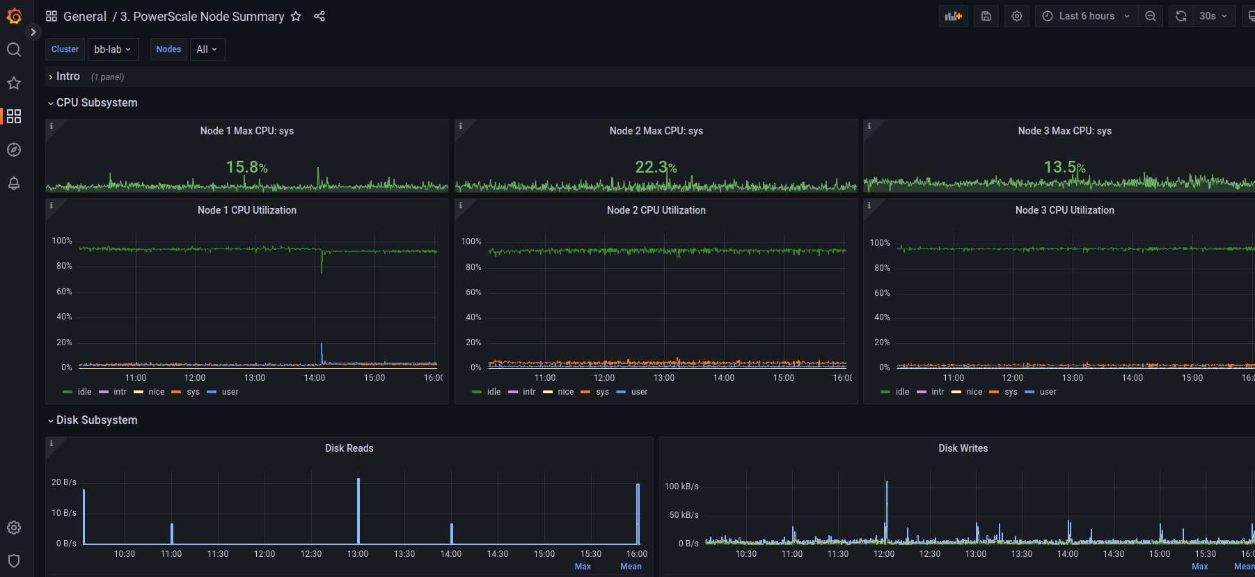 This is base dashboard that represents the node specific metrics interesting to developers and admins. Part of the Isilon Data Insights connector package. There are several flavors of it: Original is here: https://github.com/Isilon/isilon_data_insights_connector Next Gen: https://github.com/tenortim/gostats Containerized: https://github.com/j-sims/idi