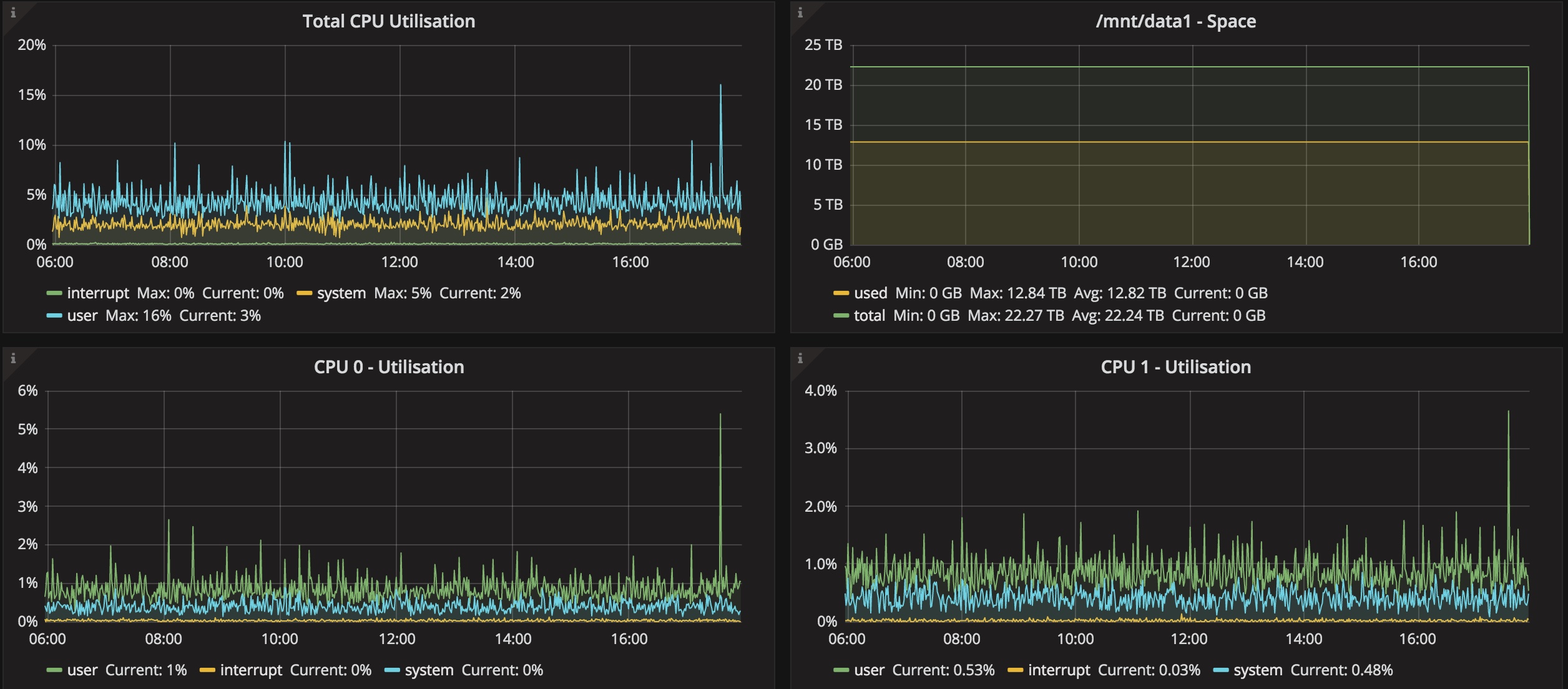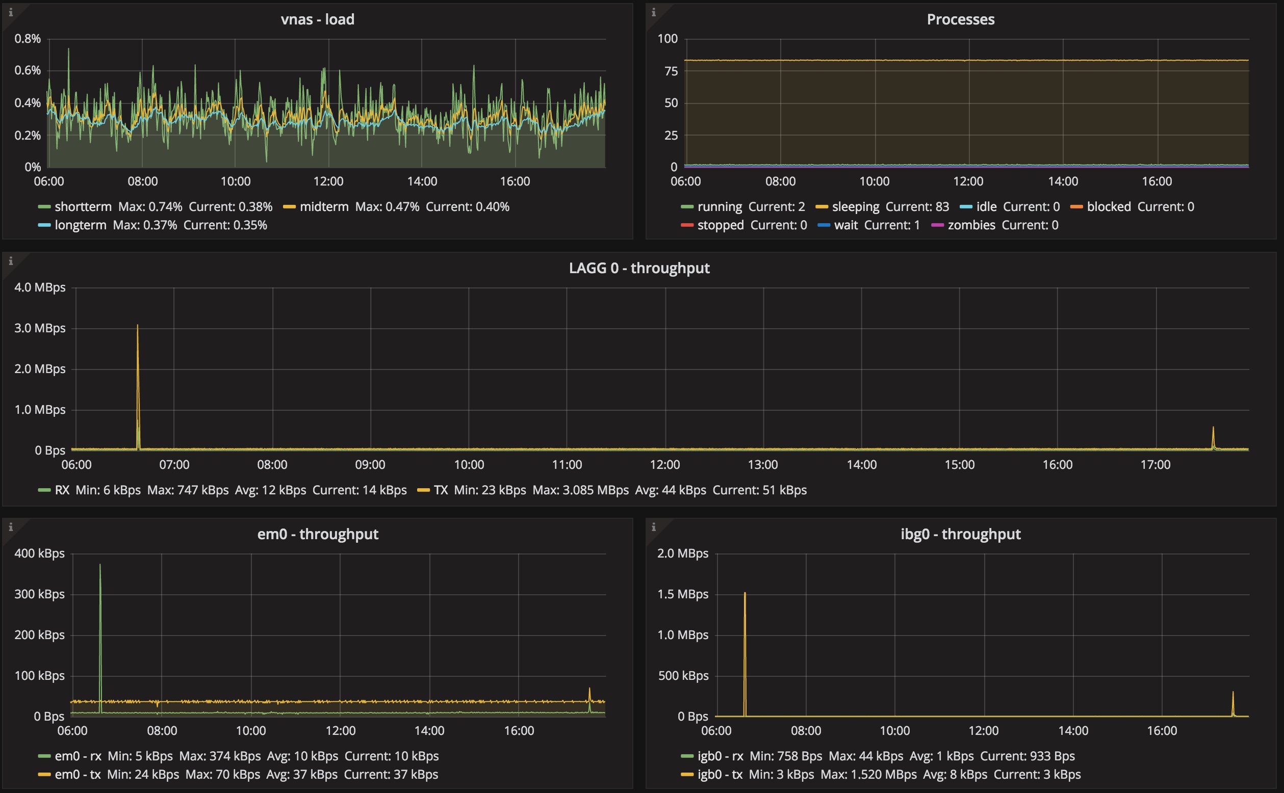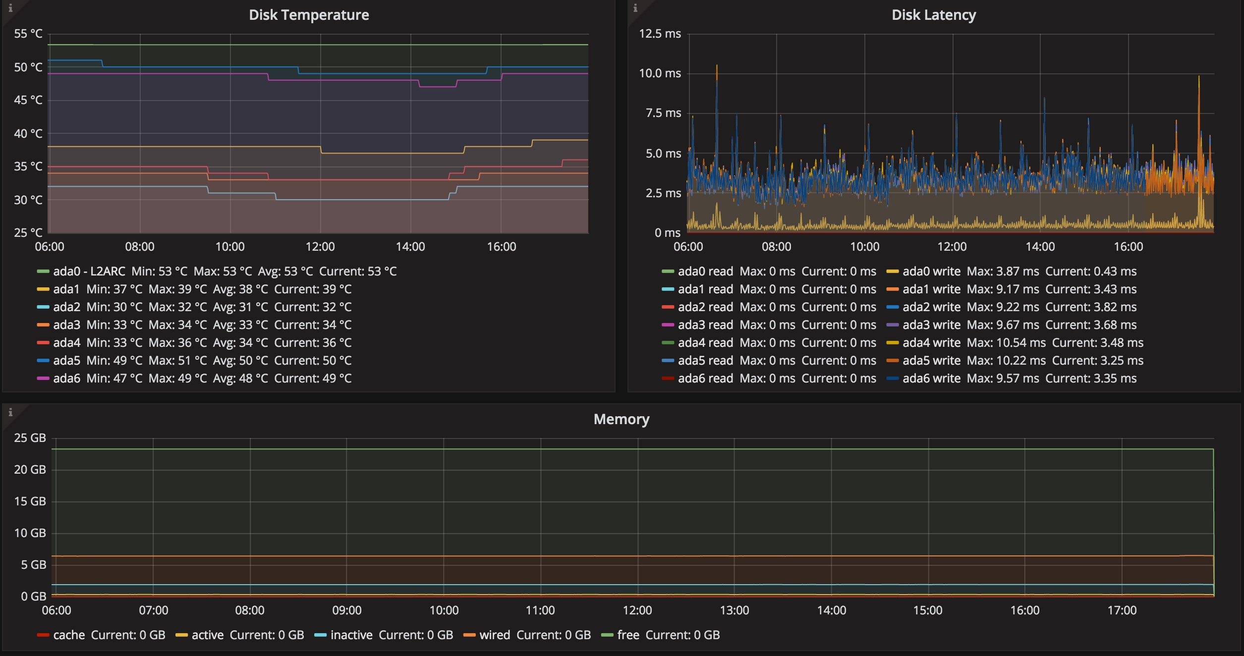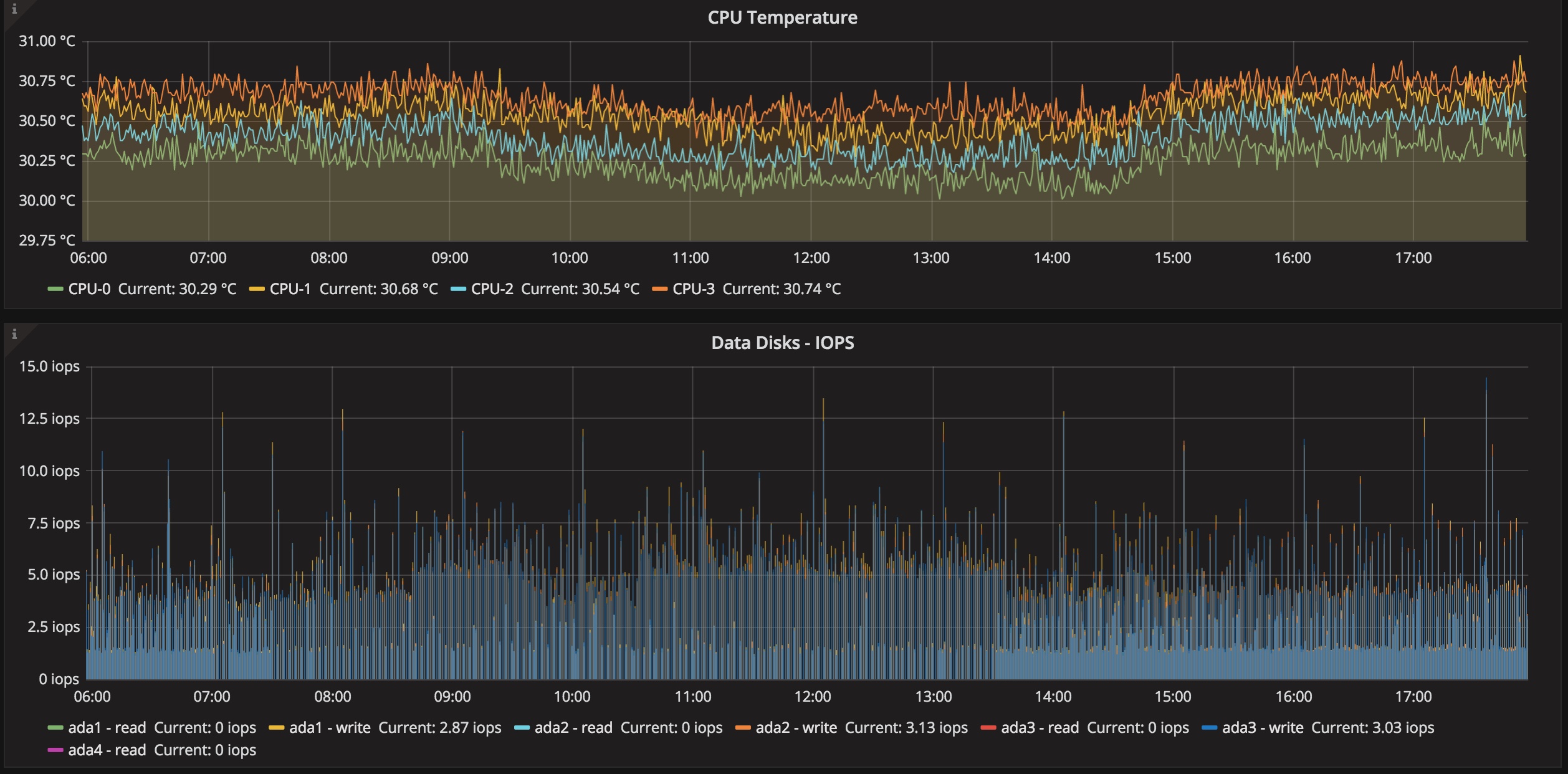 This is a dashboard to display data from Freenas Corral sending data to influxdb's graphite collector