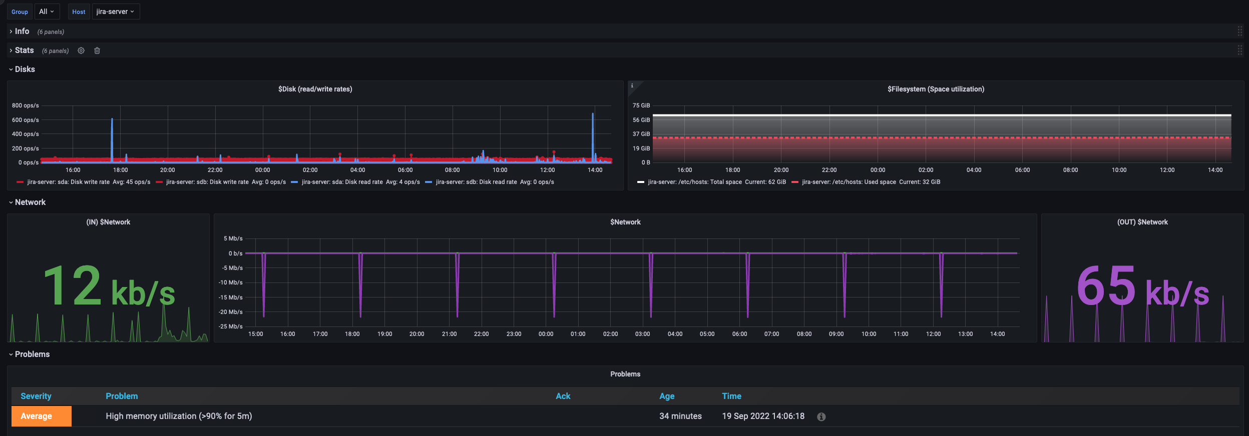 Check the status of your server’s RAM, CPU, Network Traffic, Disk data and more.