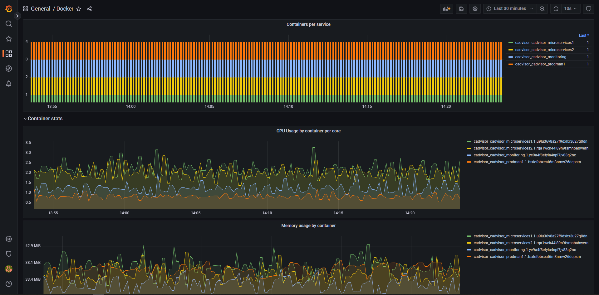 Docker swarm services and container metrics via Google Cadvisor