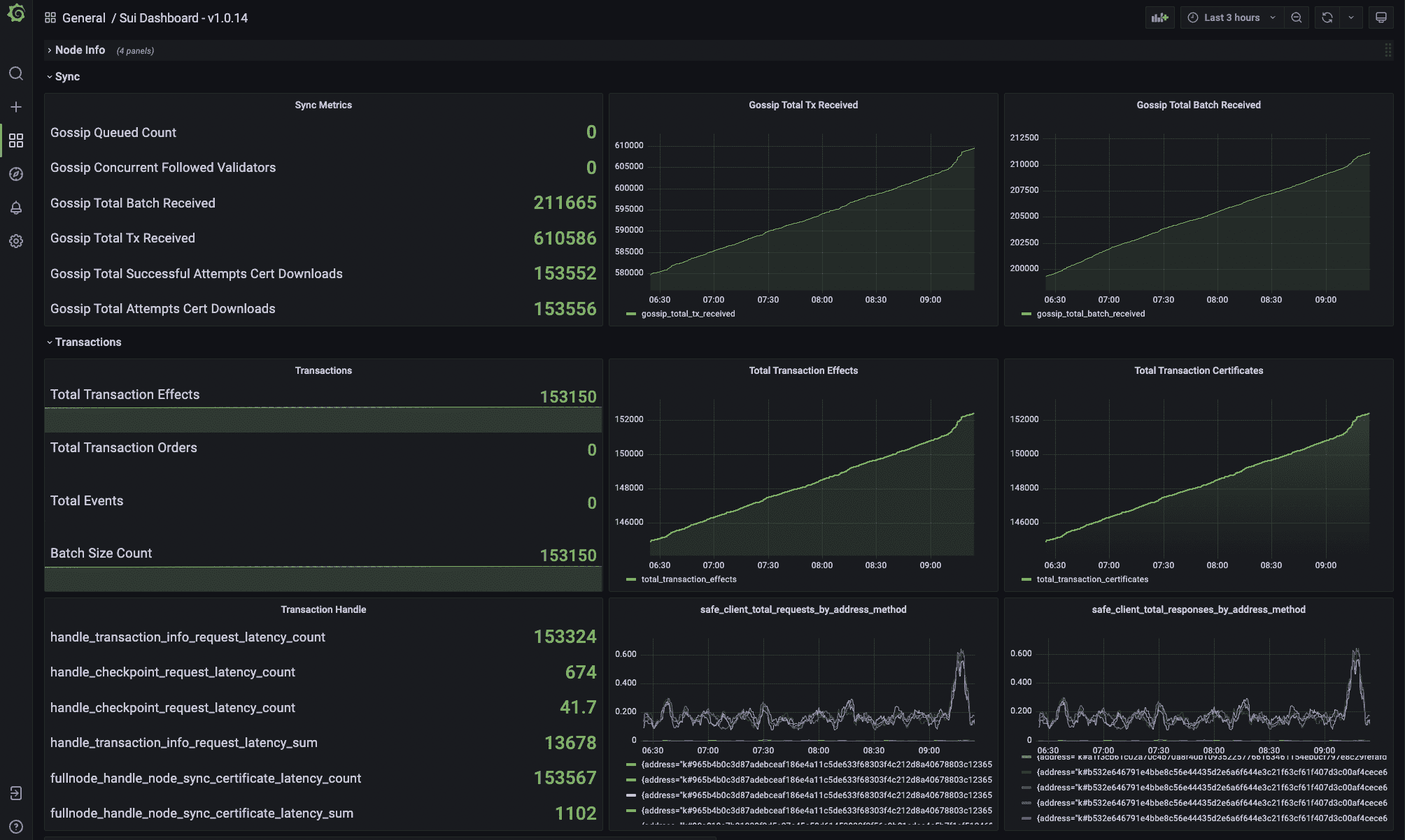 This Grafana Dashboard requires you to have a running instance of the Sui full node. Sui full node exports metrics by default on port 9184.