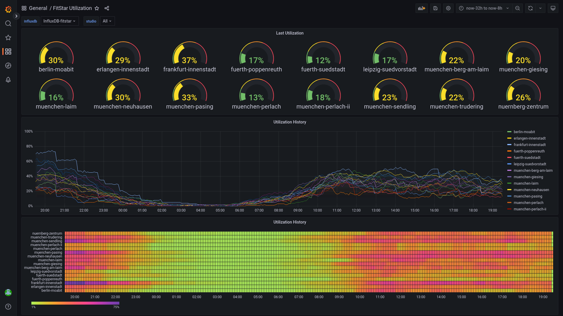 Dashboard for visualizing Fit Star utilization data from an InfluxDB.