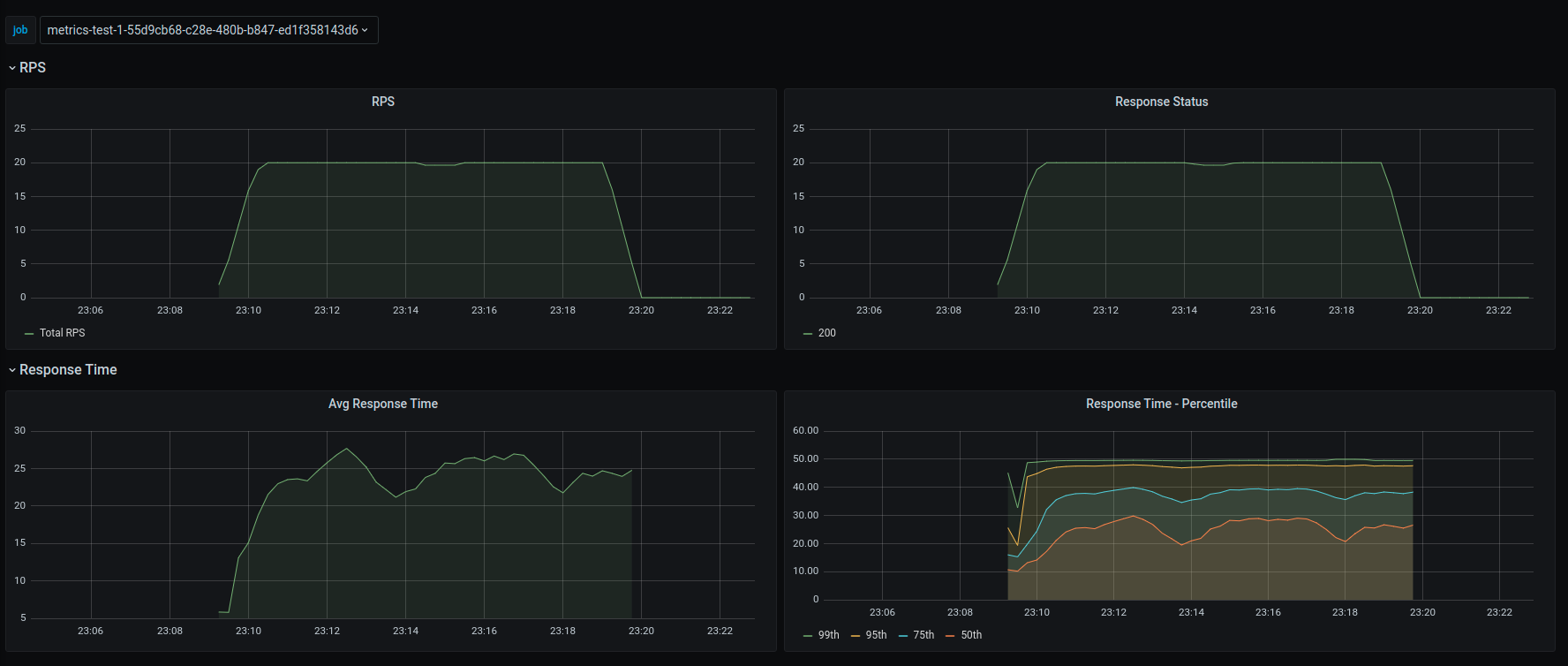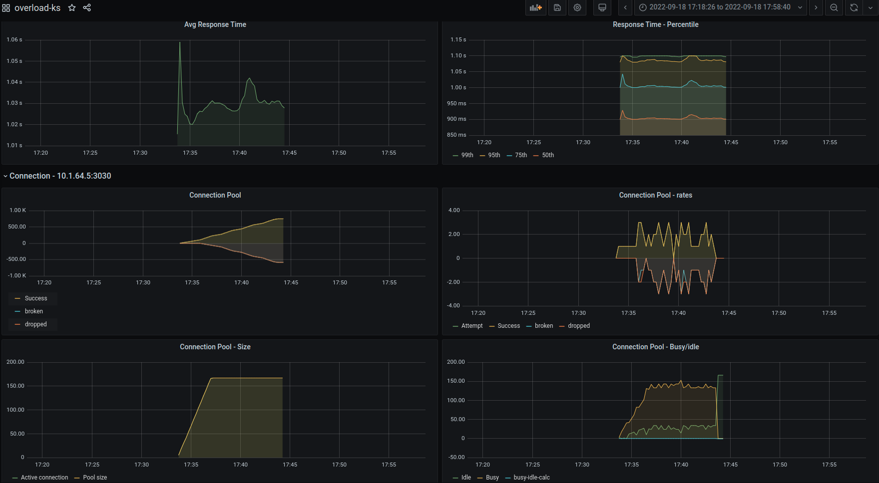 The Overload dashboard uses the prometheus data source to create a Grafana dashboard with the graph panel.