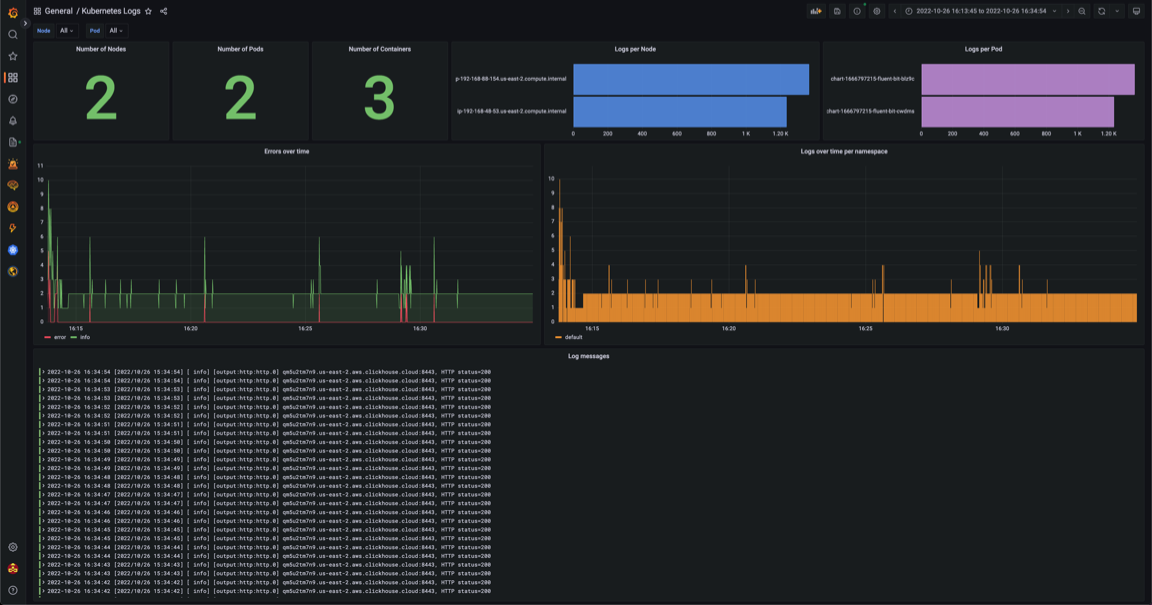 Dashboard for Sending Kubernetes logs to ClickHouse with Fluent Bit