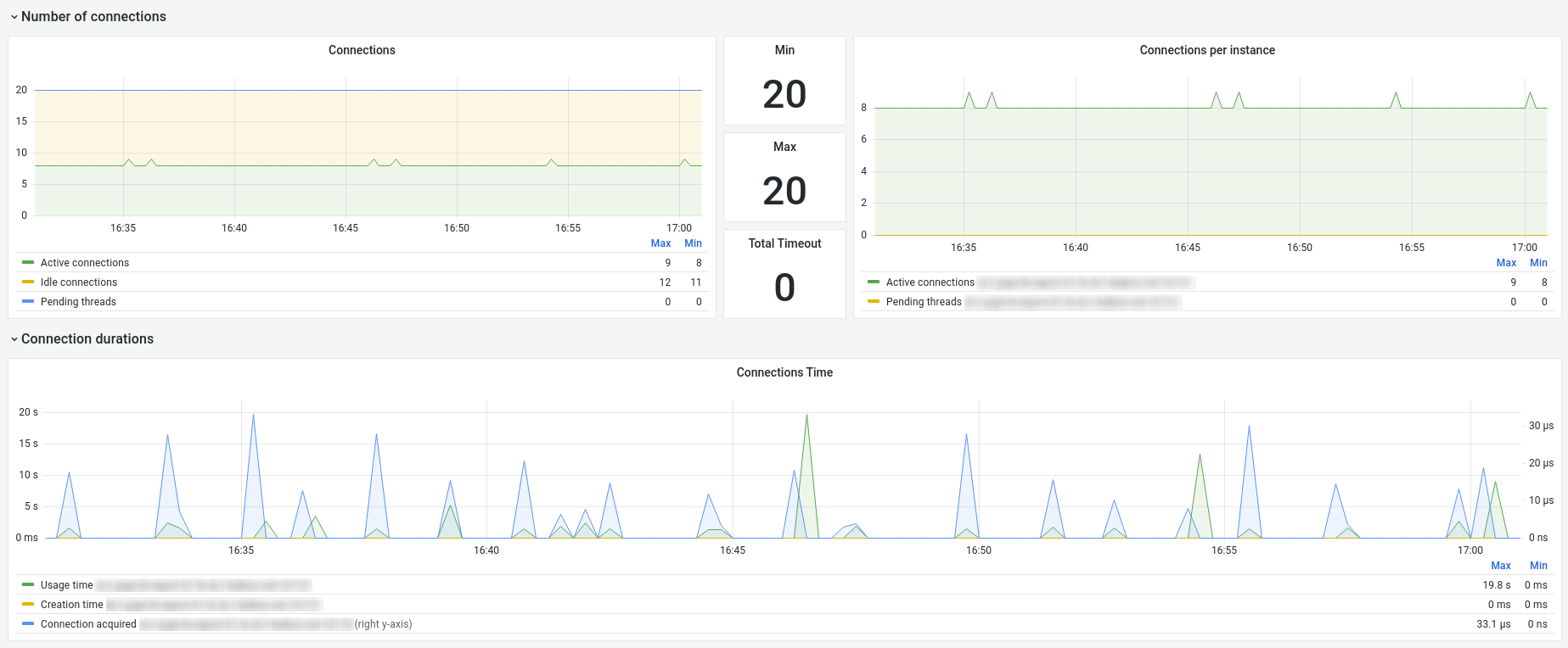 Data about HIkariCP connection pools exposed by HikariCP Prometheus exporter
