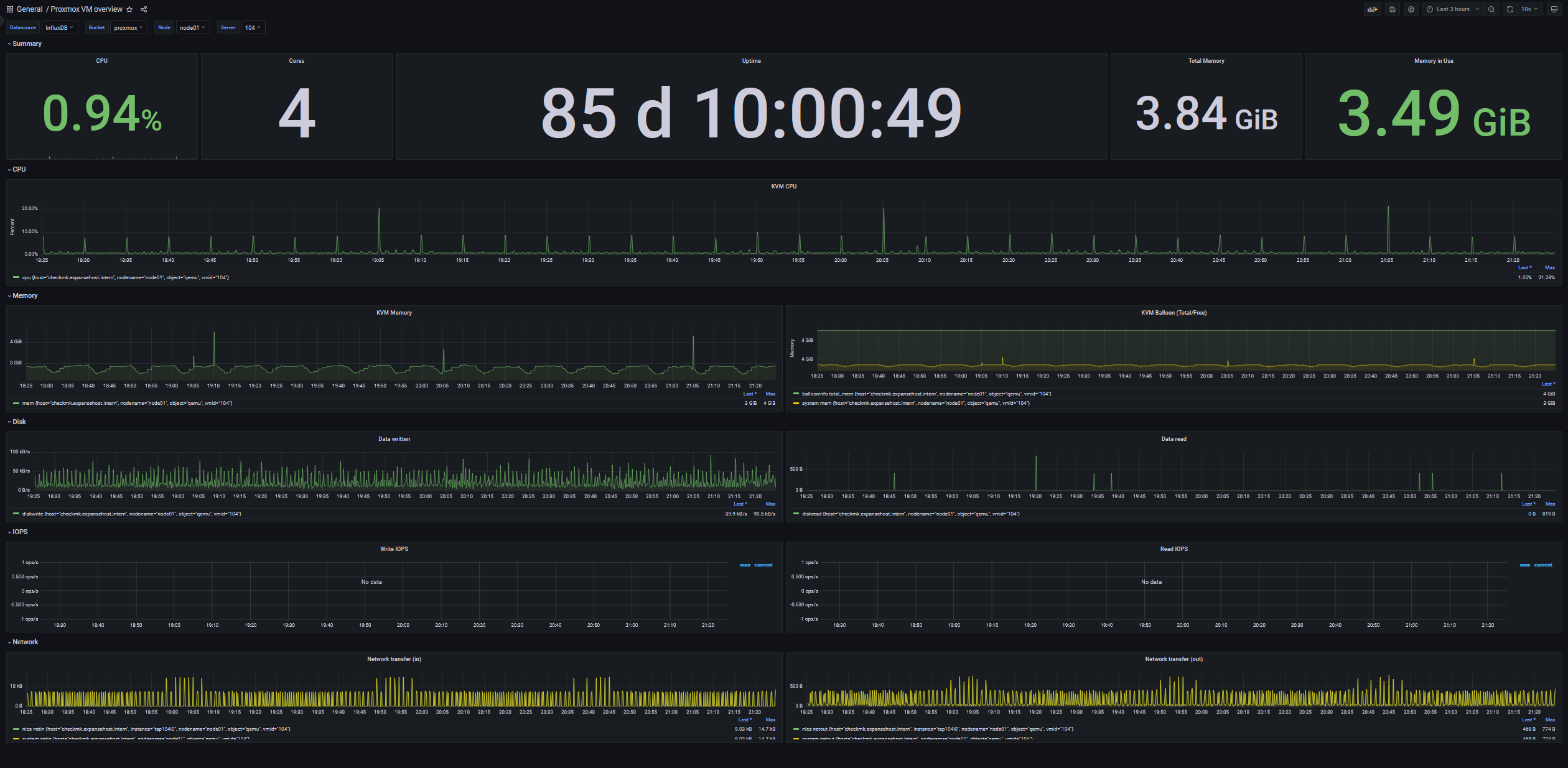 Since Proxmox VE now has a native exporter for writing host/cluster metrics to InfluxDB 2.0 oss or cloud, i have written this grafana dashboard - completely in fluxlang.