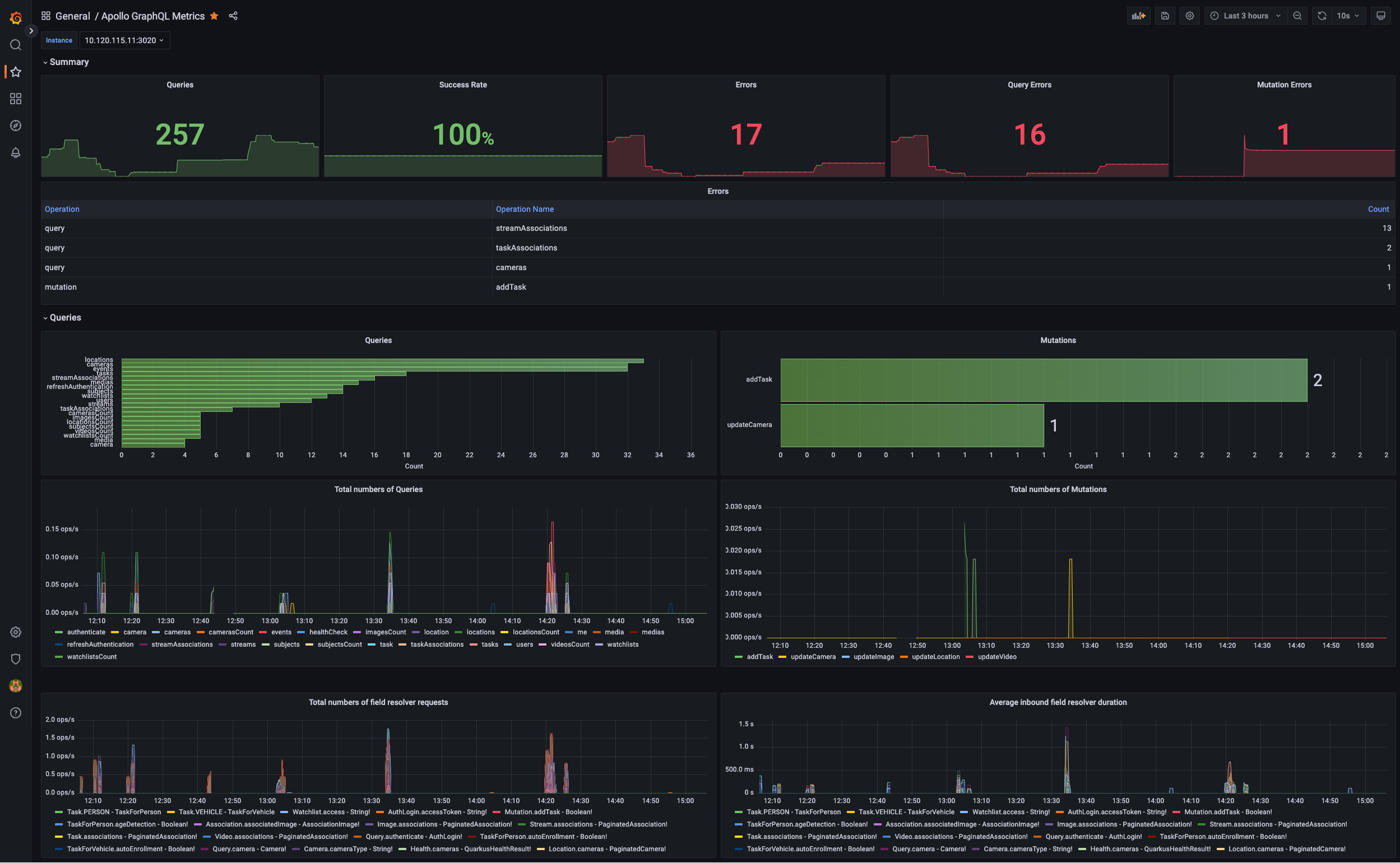 Apollo GraphQL metrics. Mutations/errors/operations.
