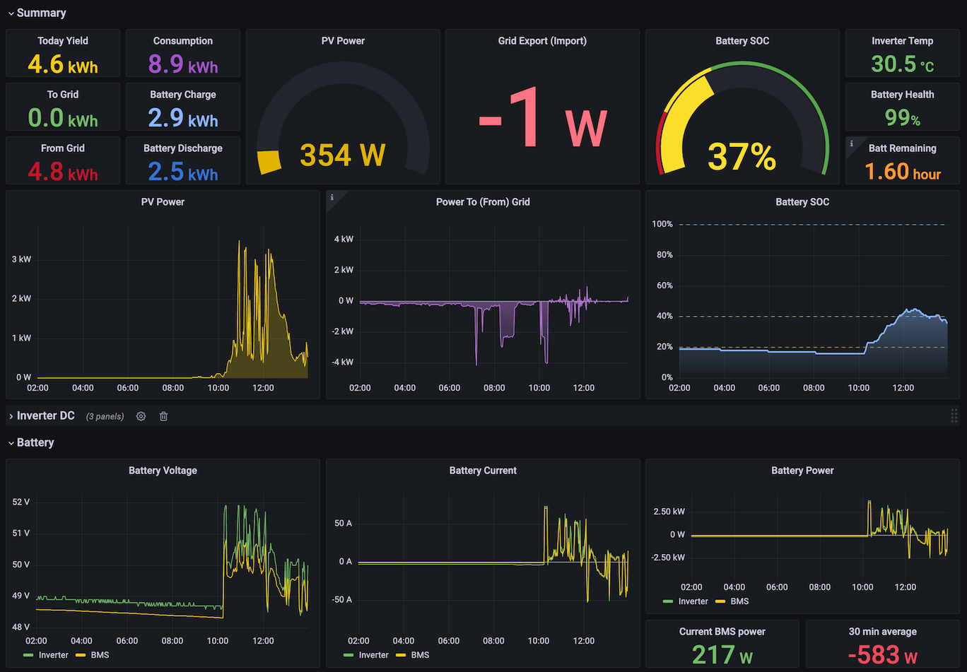 Dashboard for data collected by solis_exporter and stored in Prometheus