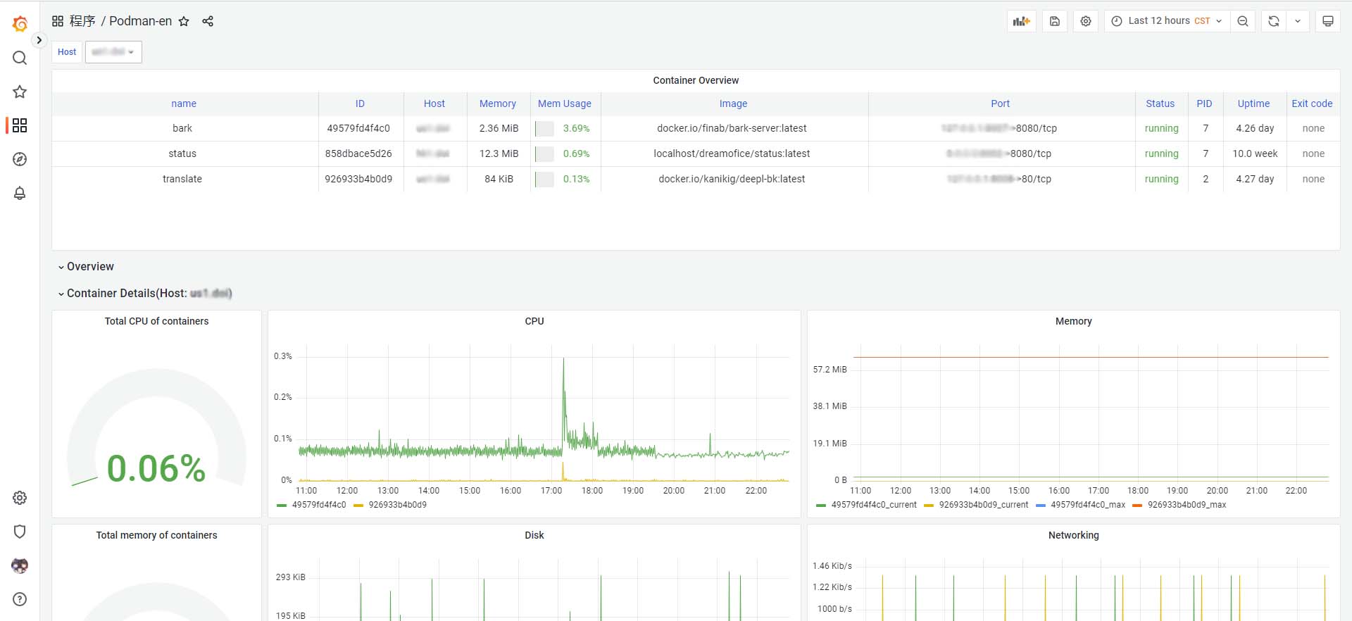 A Grafana dashboard for use with prometheus-podman-export, available in both Chinese and English.