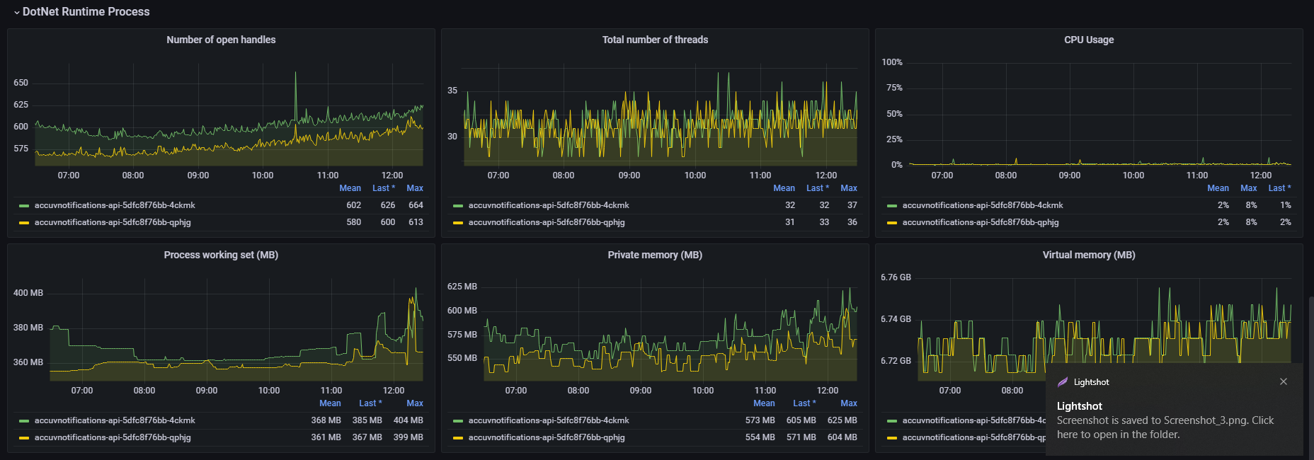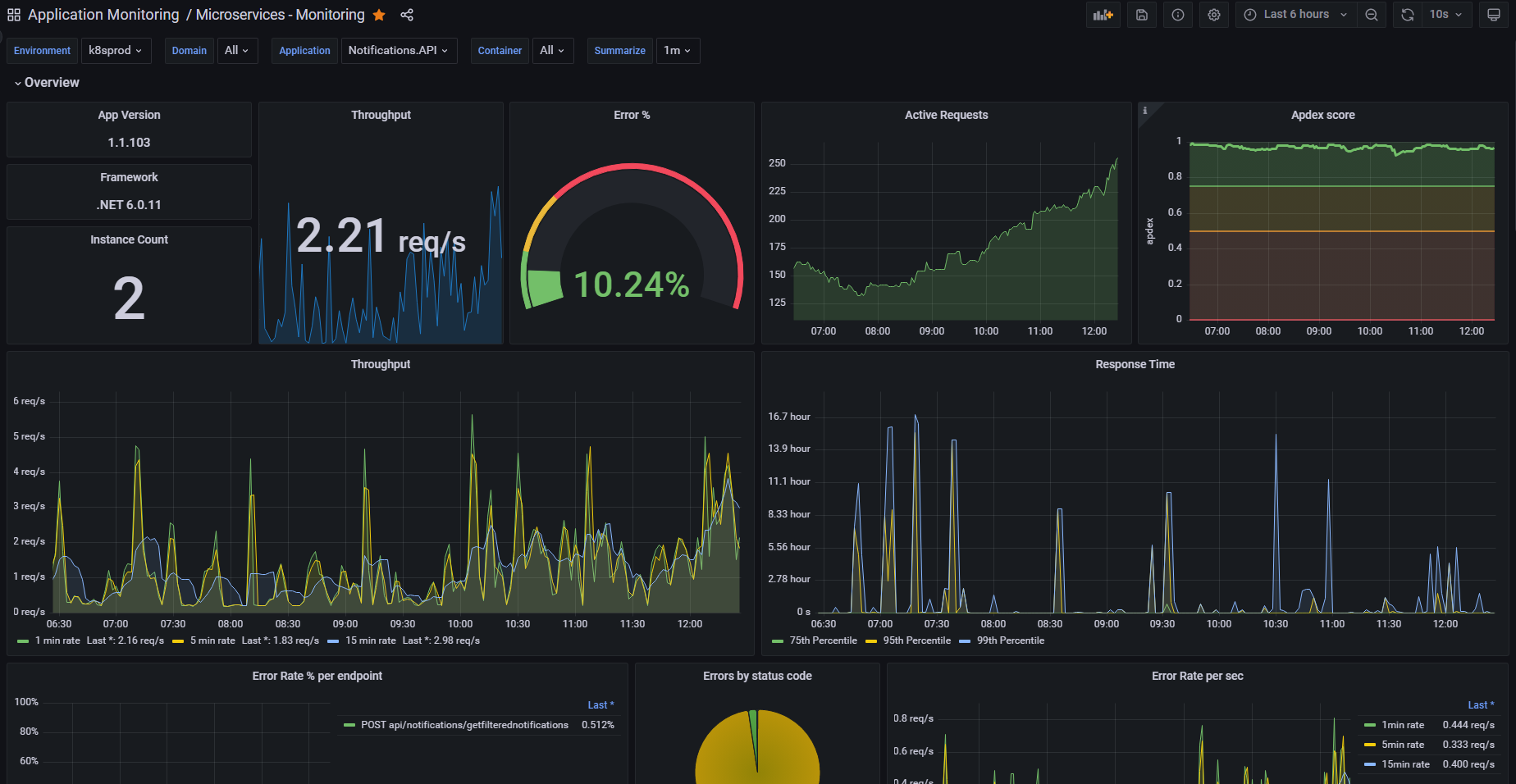 Dashboard to visualize metrics captured by App Metrics ASP.NET Core Middleware, tested with App.Metrics.Formatters.Prometheus 4.3.0 - https://www.app-metrics.io/