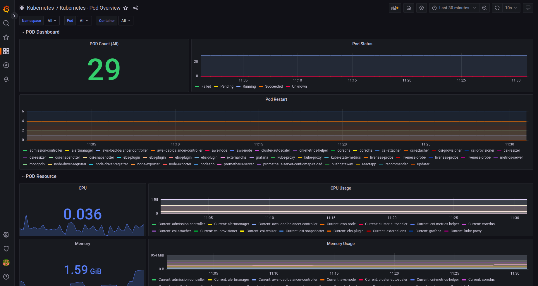 Monitor your Kubernetes deployment with prebuilt visualizations that allow you to drill down from a high-level cluster overview to pod-specific details in minutes.