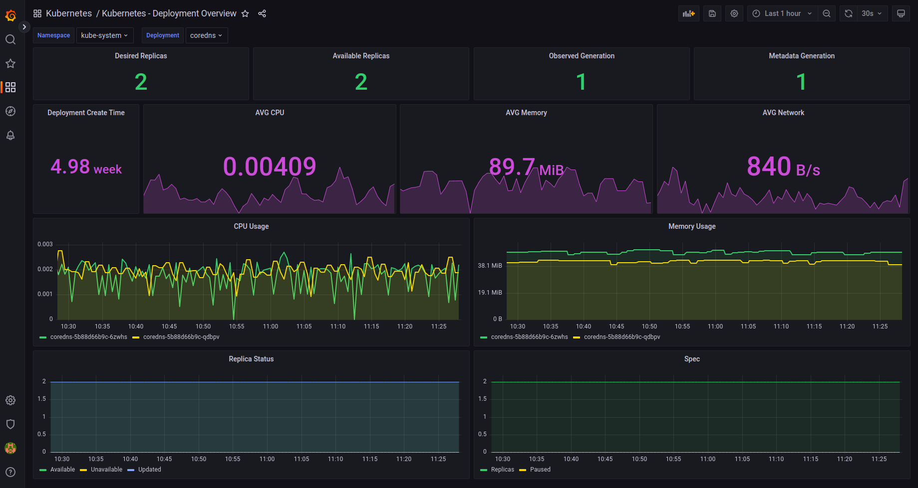 Monitor your Kubernetes deployment with prebuilt visualizations that allow you to drill down from a high-level cluster overview to pod-specific details in minutes.