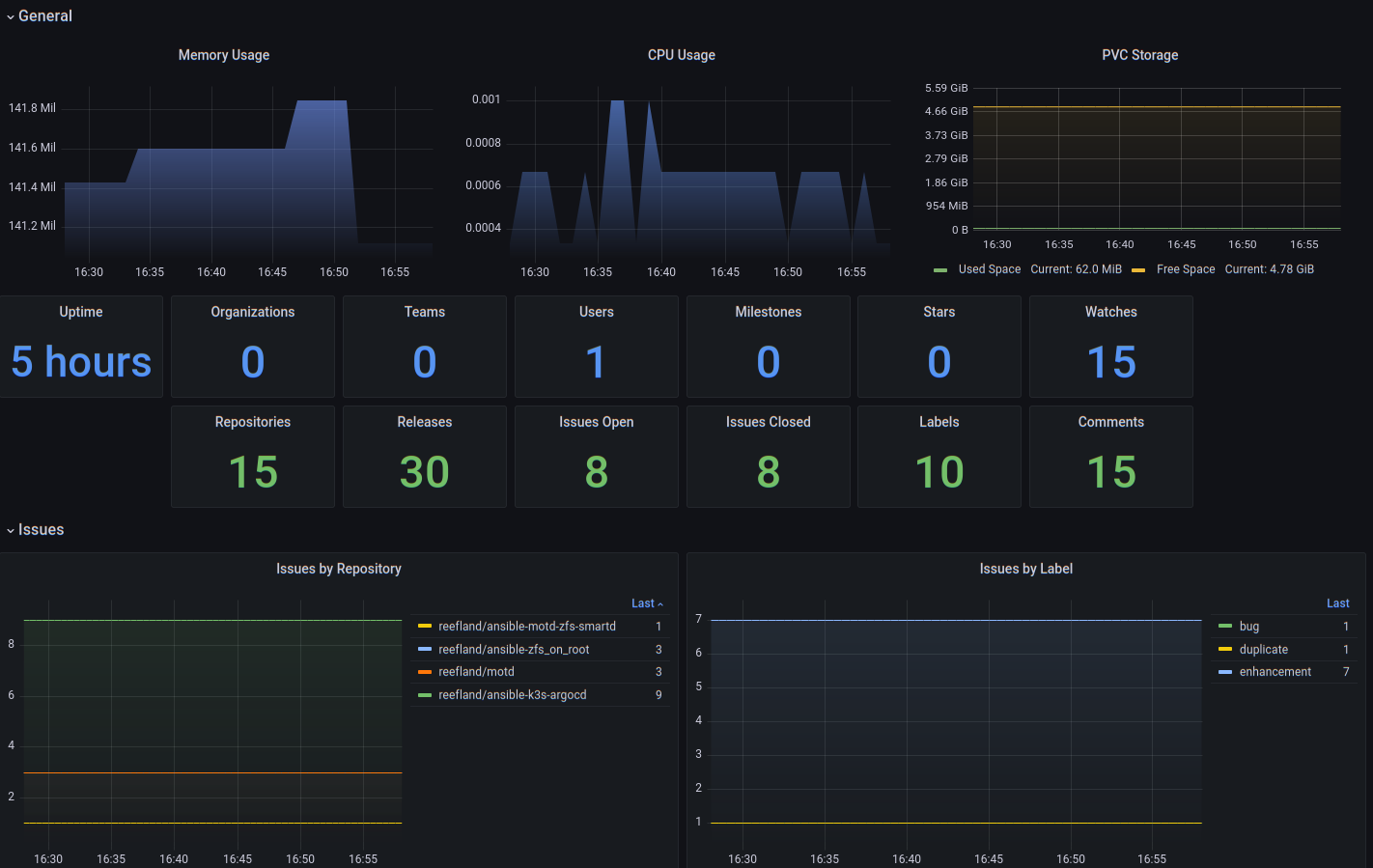 Dashboard to monitor Gitea deployed as a StatefulSet on Kubernetes. Can also monitor Gitea's PVC storage space.
