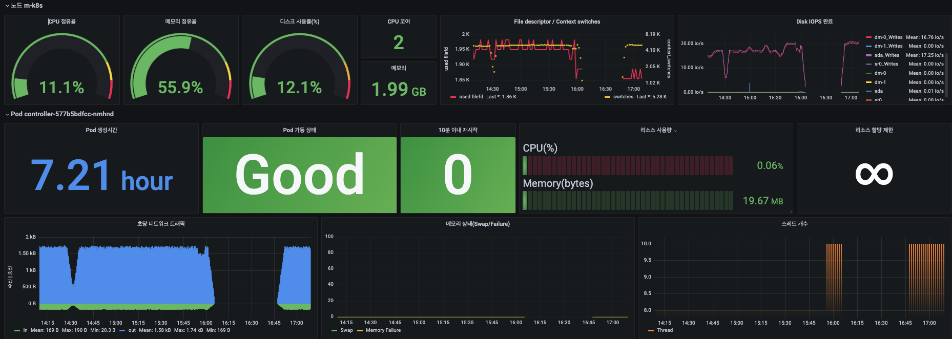 이 대시보드는 ?컨테이너 인프라 환경 구축을 위한 쿠버네티스/도커 책에서 사용된 대시보드를 v1.26.0에 맞게 변경하였습니다. 따라서 ?컨테이너 인프라 환경 구축을 위한 쿠버네티스/도커 책에서 제공하는 가상머신 환경에 유사하게 최적화 되어 있습니다. 하지만 책의 실습 버전과 다소 차이가 있기 때문에 직접적인 연결은 되지 않으며, 클라우드 사에서 제공하는 EKS,AKS,GKE에서도 일부 익스포터를 깔고 설정하면 동작되는 것은 확인하였습니다. 하지만 여러가지의 고려 사항들이 있을 수 있기 때문에 이를 보증하진 않습니다.
