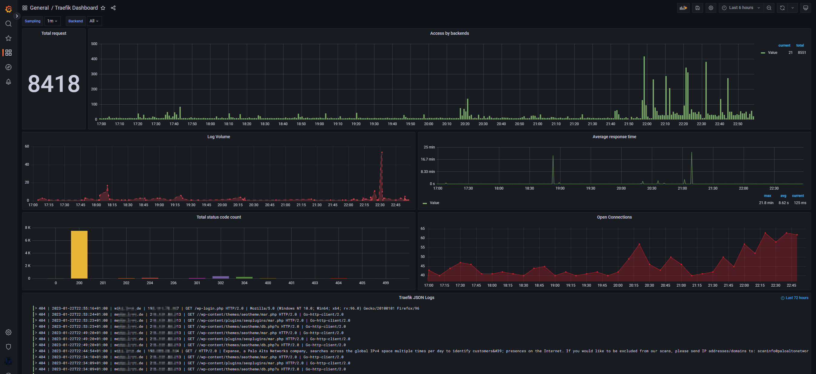 Grafana dashboard to visualize various stats of a Traefik reverse proxy.