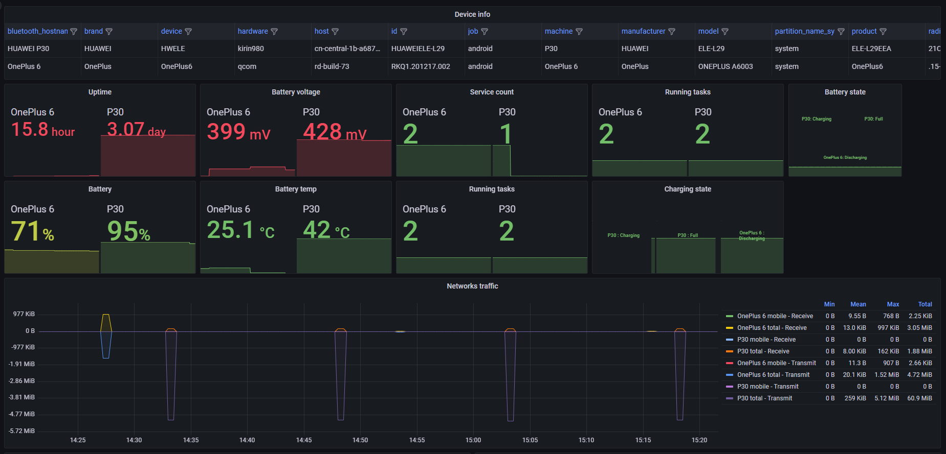 A basic dashboard for Prometheus android exporter (I am not the author of the app)