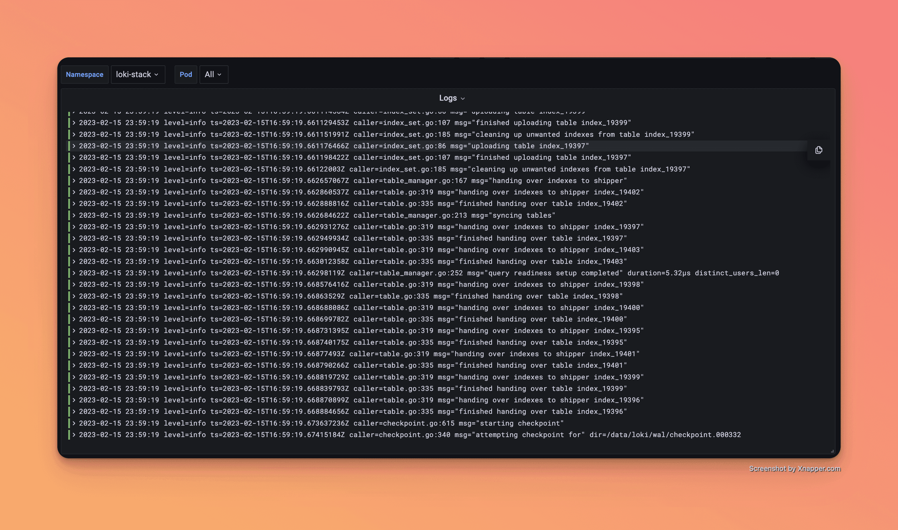 Kubernetes / Apps / Logs