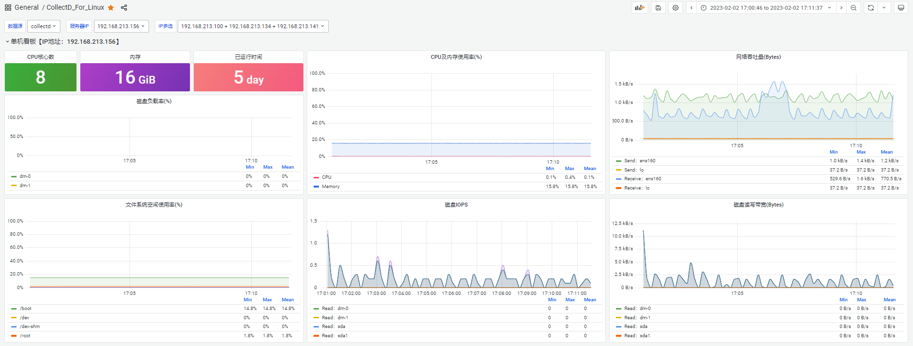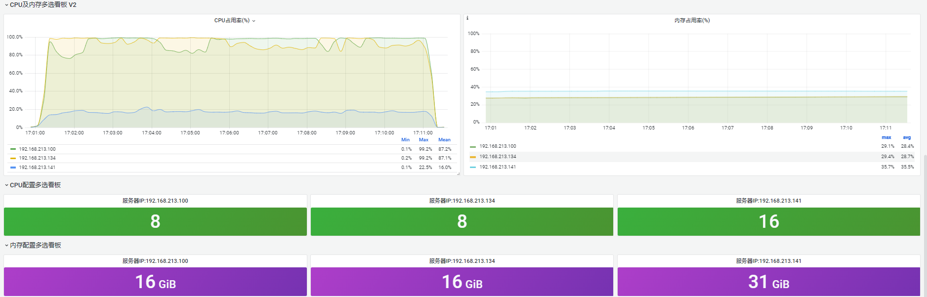 Linux服务器轻量级性能监控面板(运行时、CPU、内存、磁盘),支持服务器多选同时展示