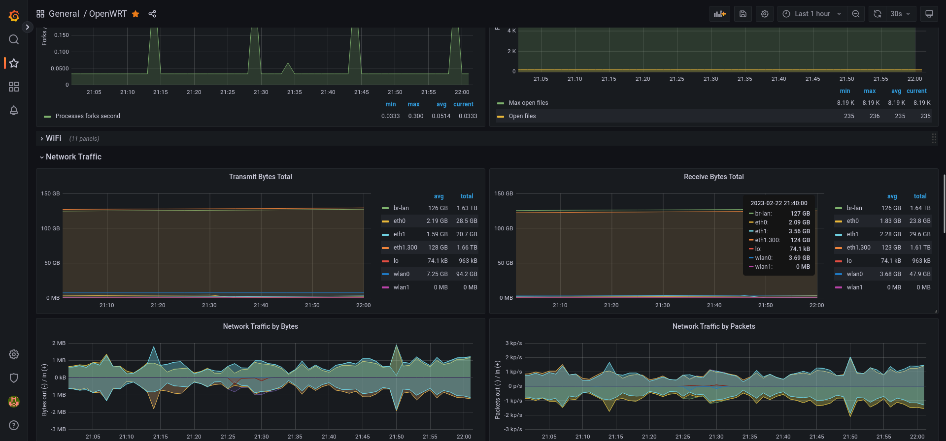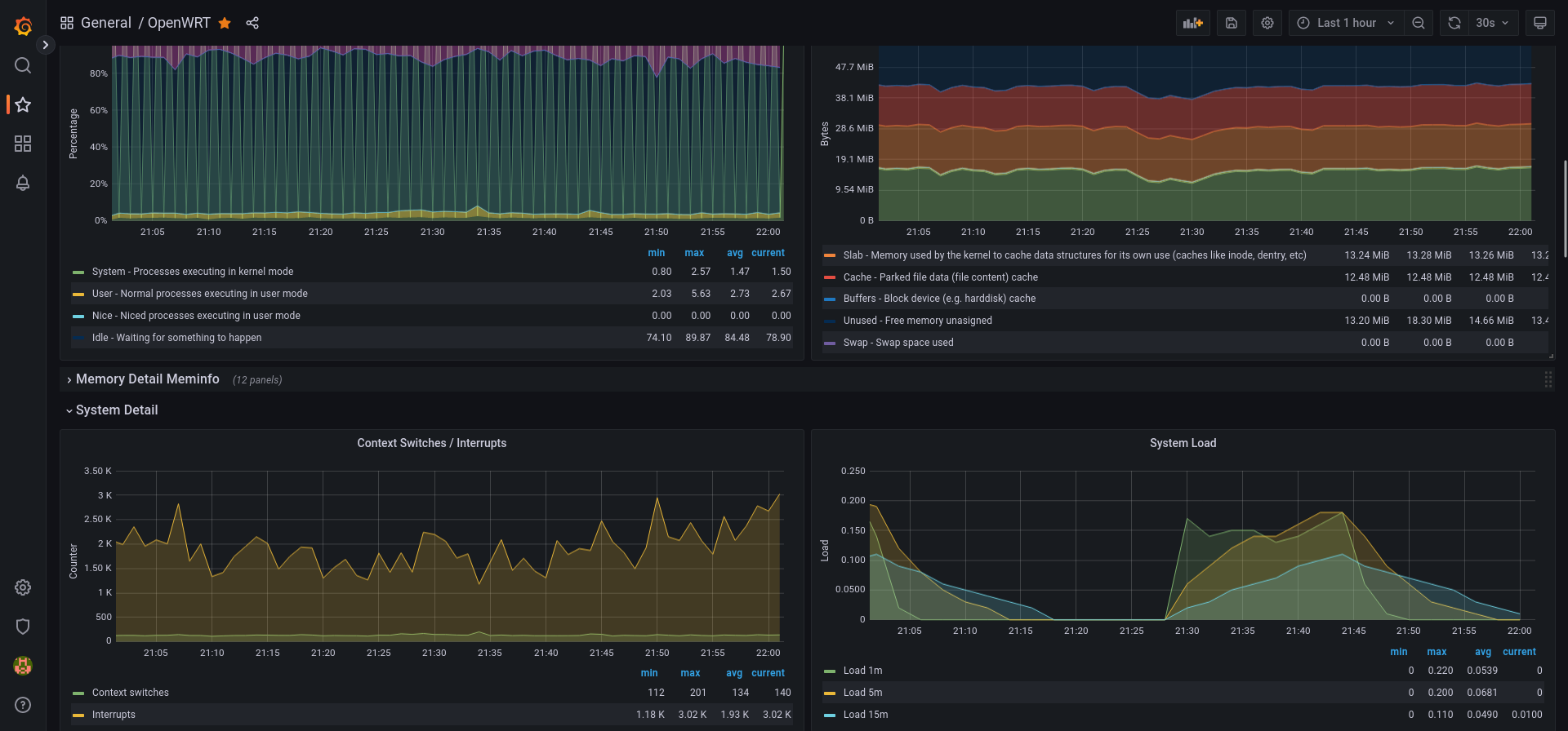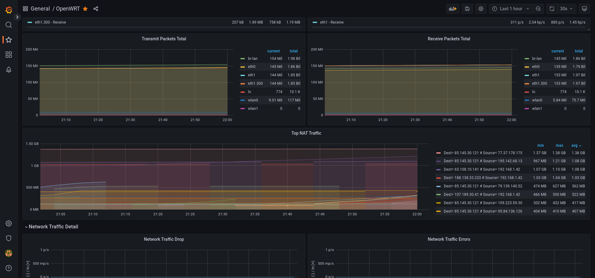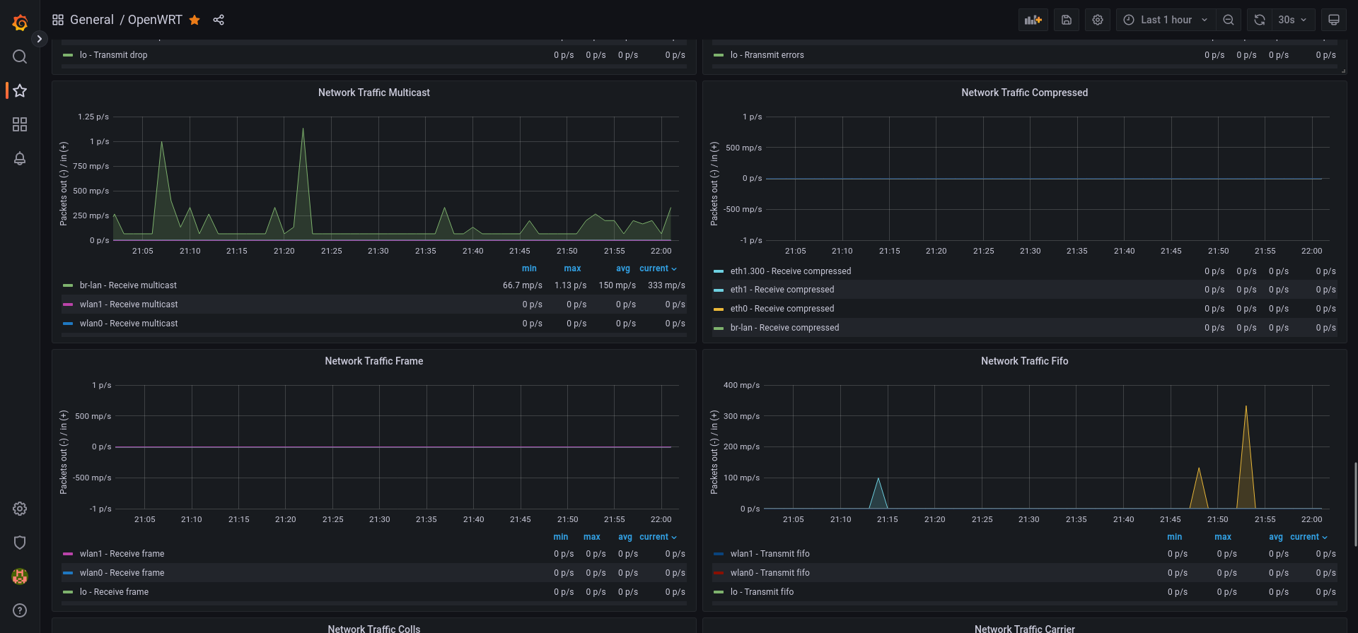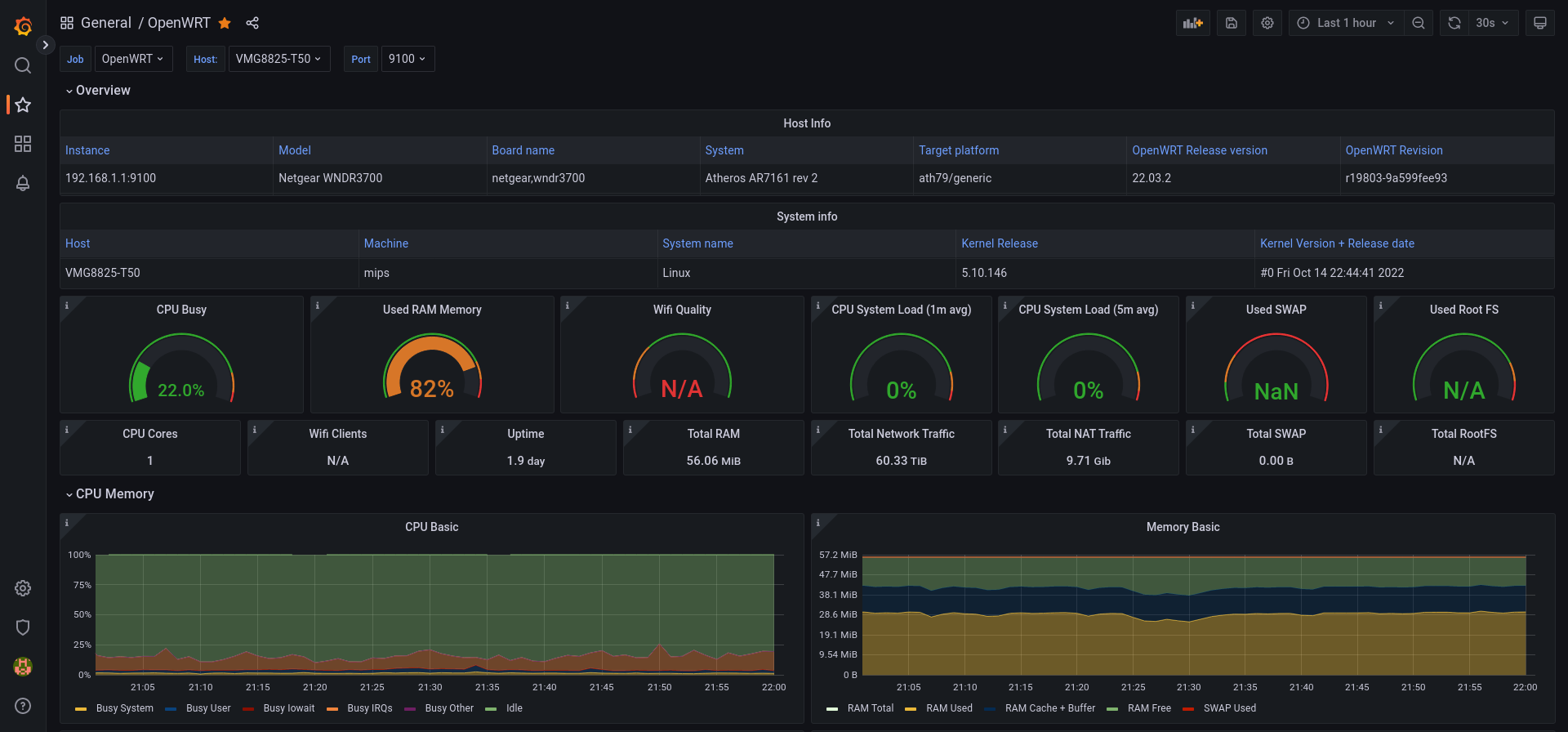 Dashboard for OpenWRT routers with installed Prometheus lua exporter scripts.