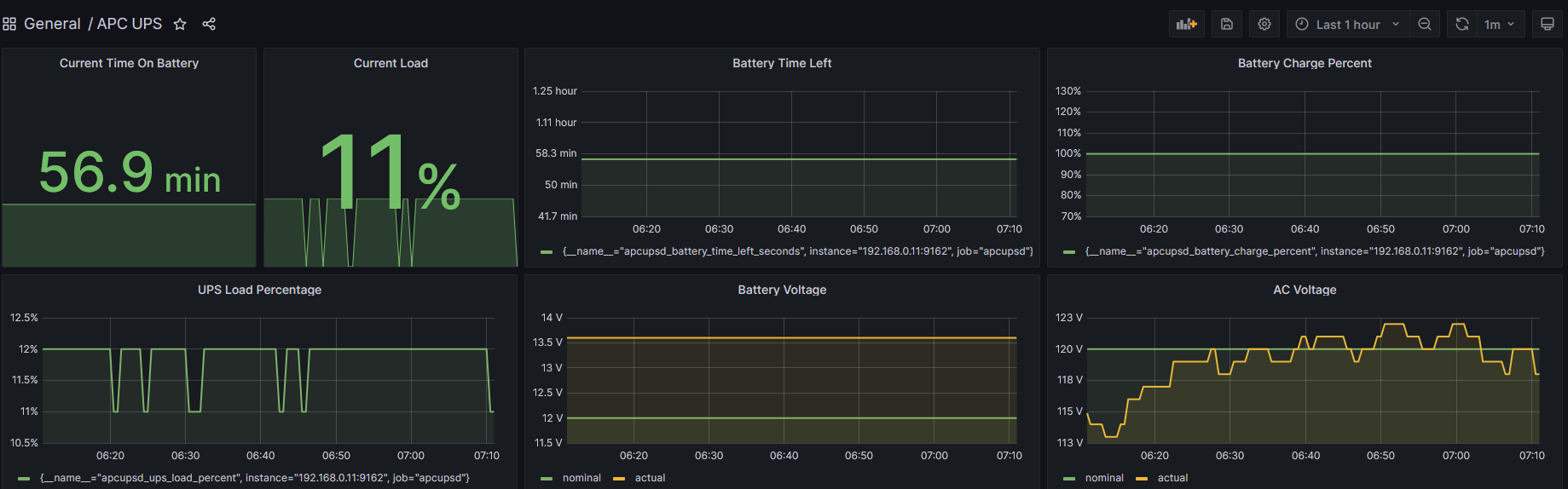 APS UPS monitoring with Prometheus and apcupsd exporter