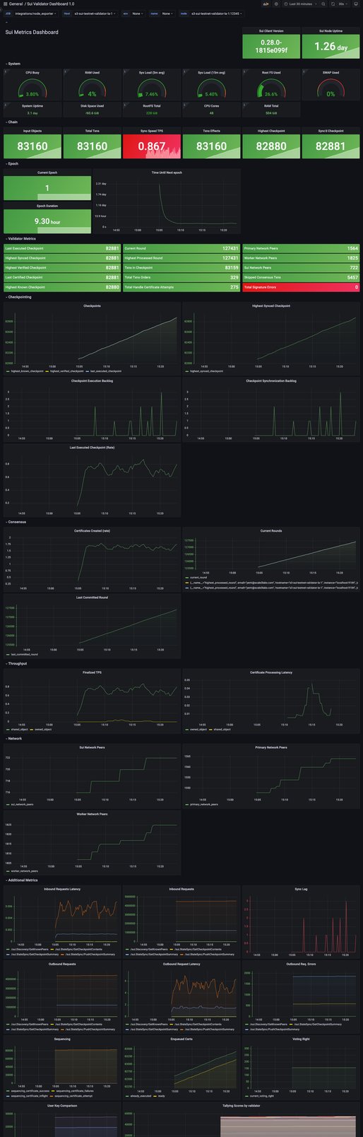 Sui Validator Node dashboard. Uses Grafana agent with node exporter plugin/integration enabled.