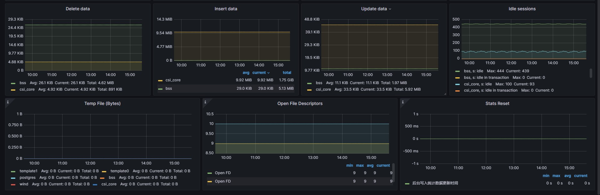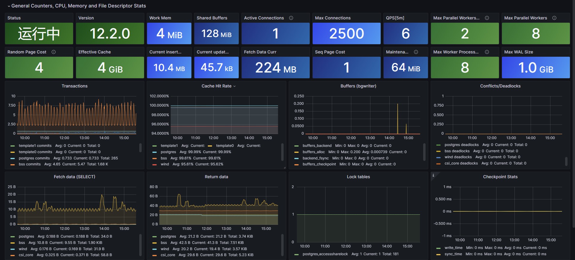 This dashboard works with postgres_exporter for prometheus