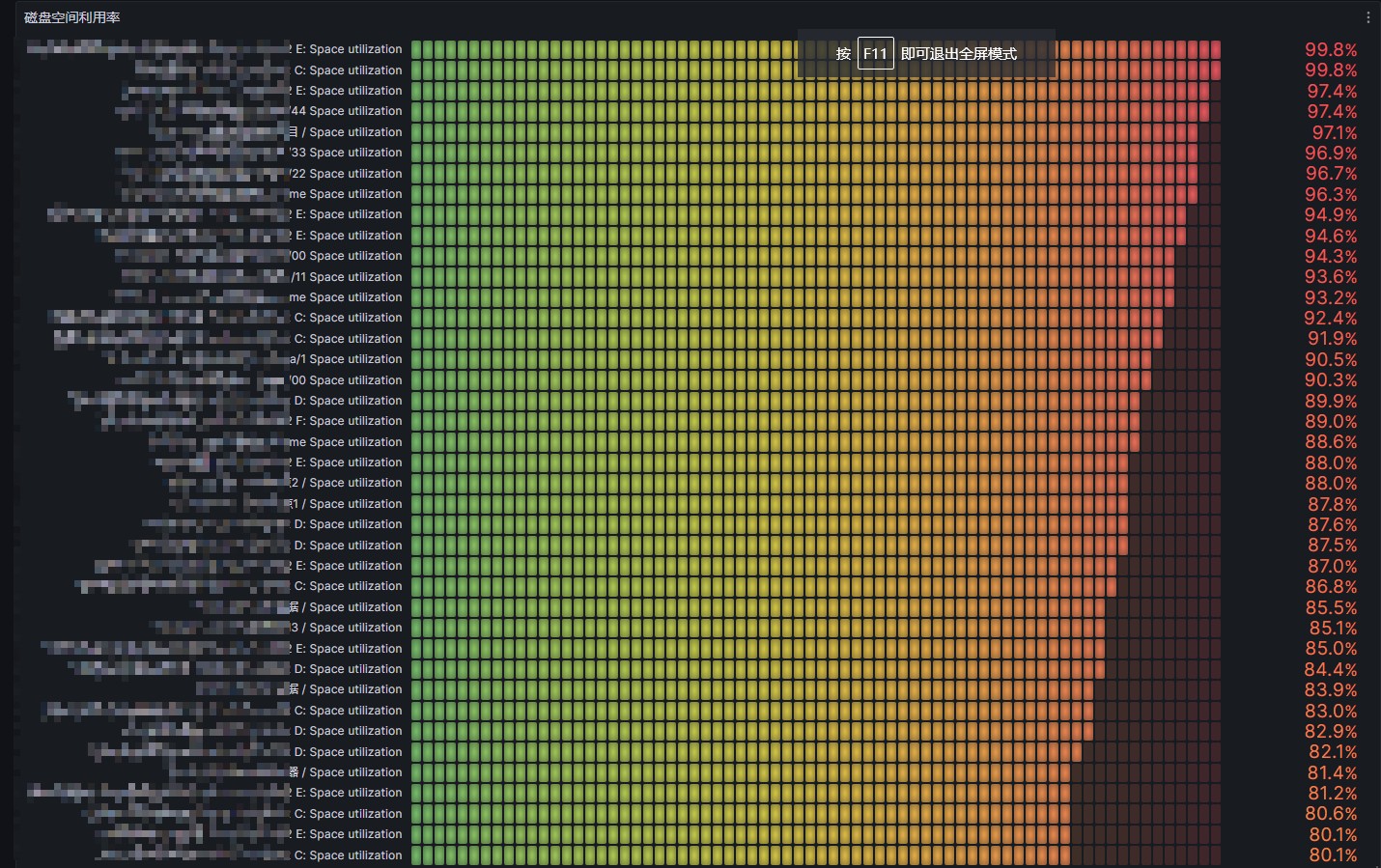 Disk_space_utilization Mix by node_exporter and windows_exporter.