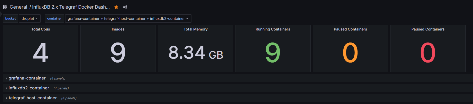 Basic docker dashboard for InfluxDB 2.x and telegraf collector.
