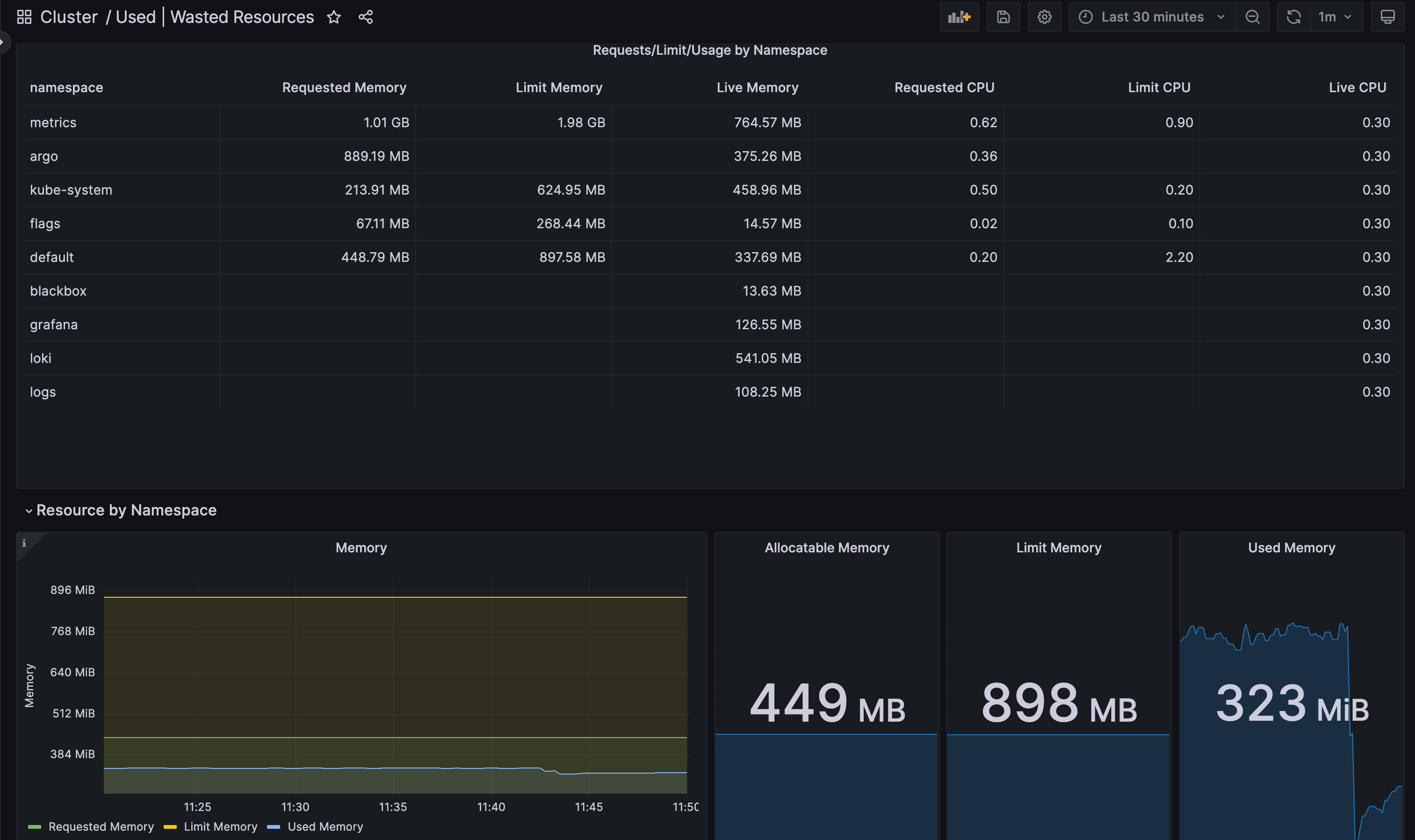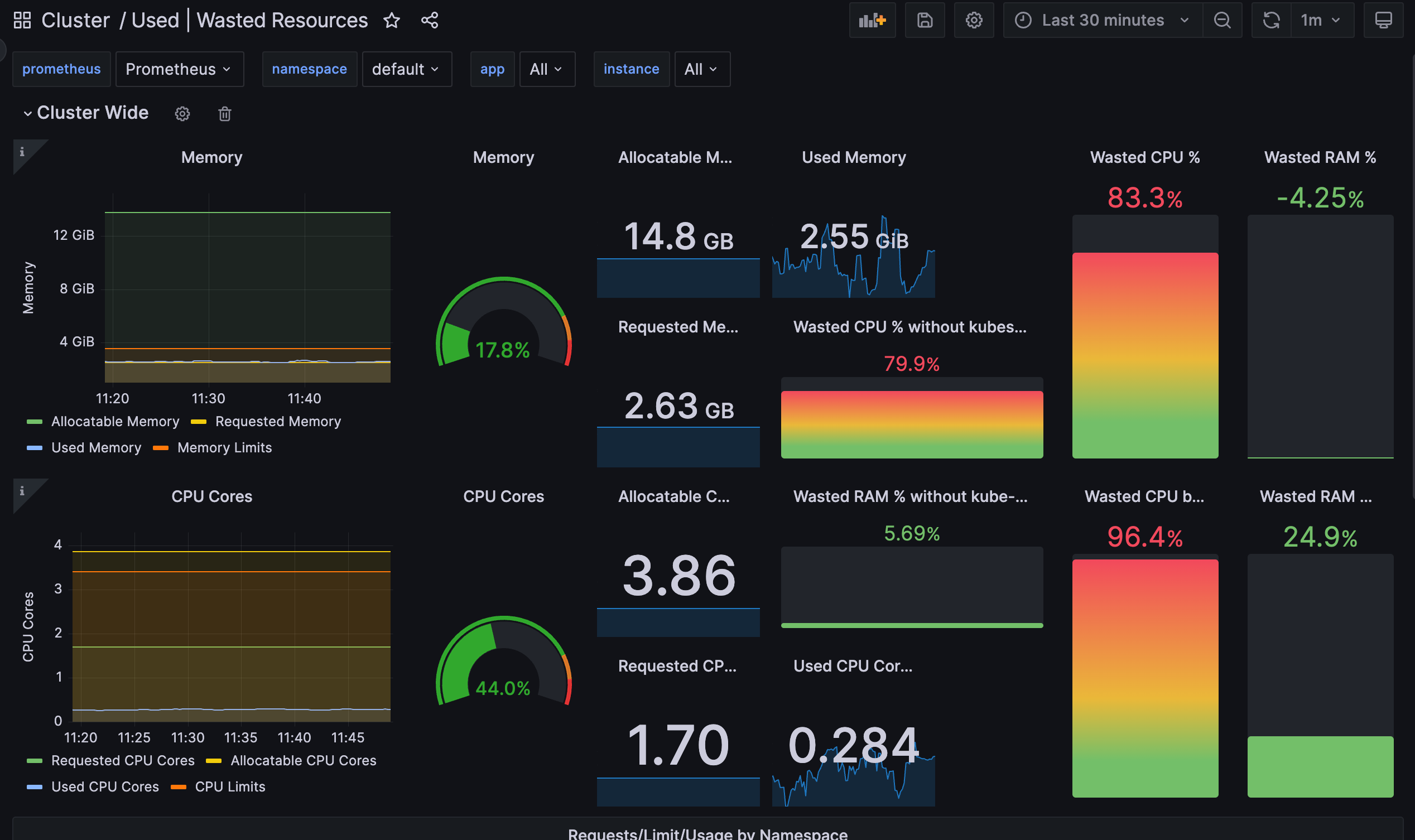 Dashboard to show the resource requests vs allocatable in the cluster