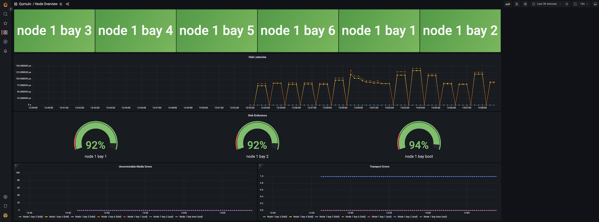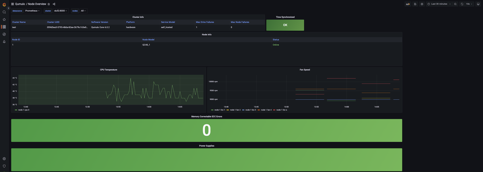 See the state of your Qumulo cluster at a glance. This dashboard includes all node-specific metrics from the Qumulo OpenMetrics REST API. Compatible with Qumulo version 6.0.2+