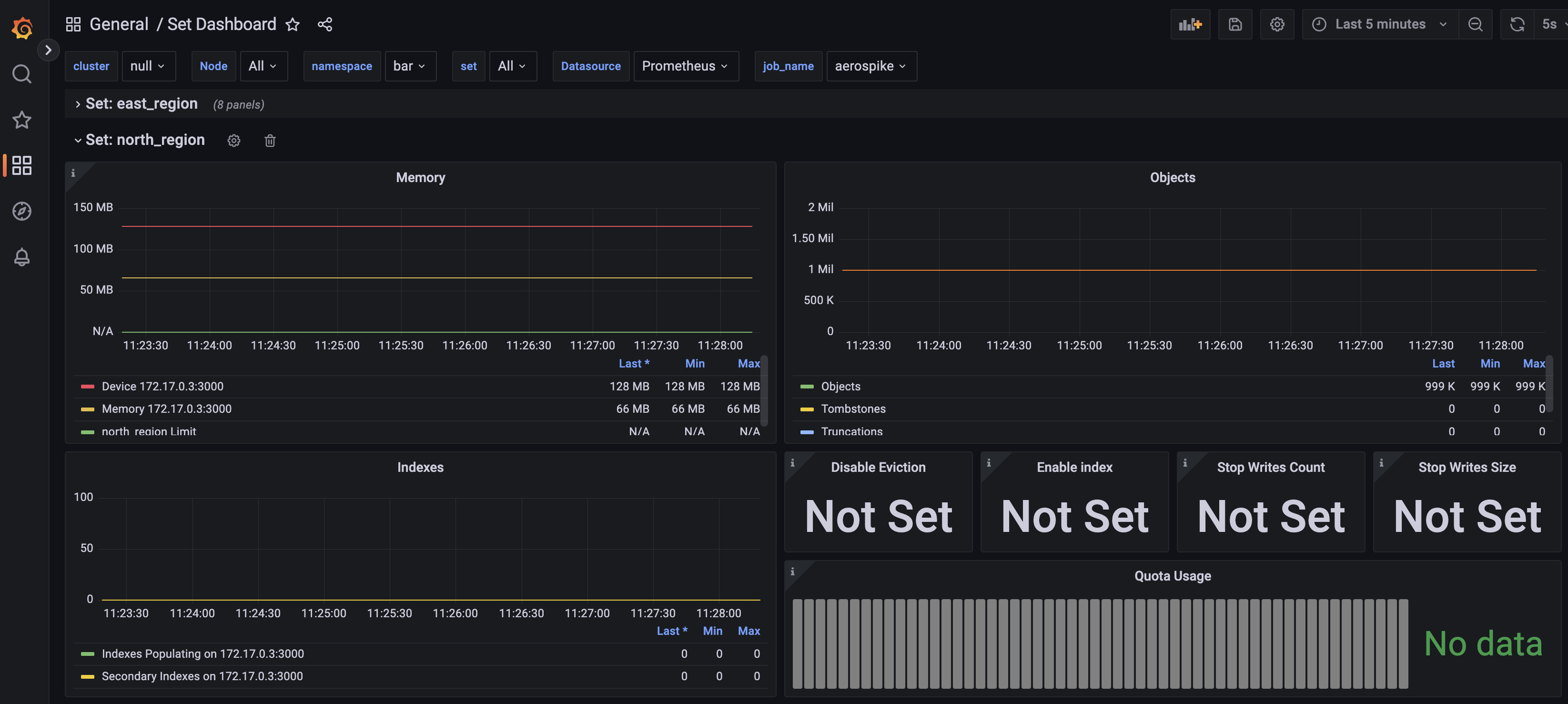 Set dashboard provides specific set level metrics as well as helping in tracking and setting specific set quotas.