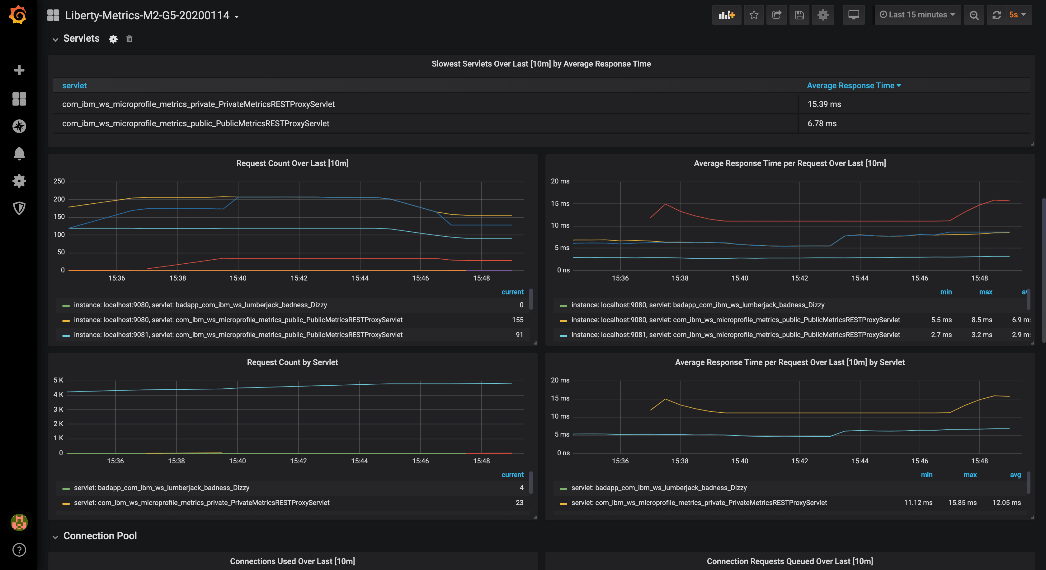 This dashboard works with Open Liberty servers running with mpMetrics-5.x feature. For prior mpMetrics versions, use the Open Liberty - mpMetrics-2.x-4.x dashboard
