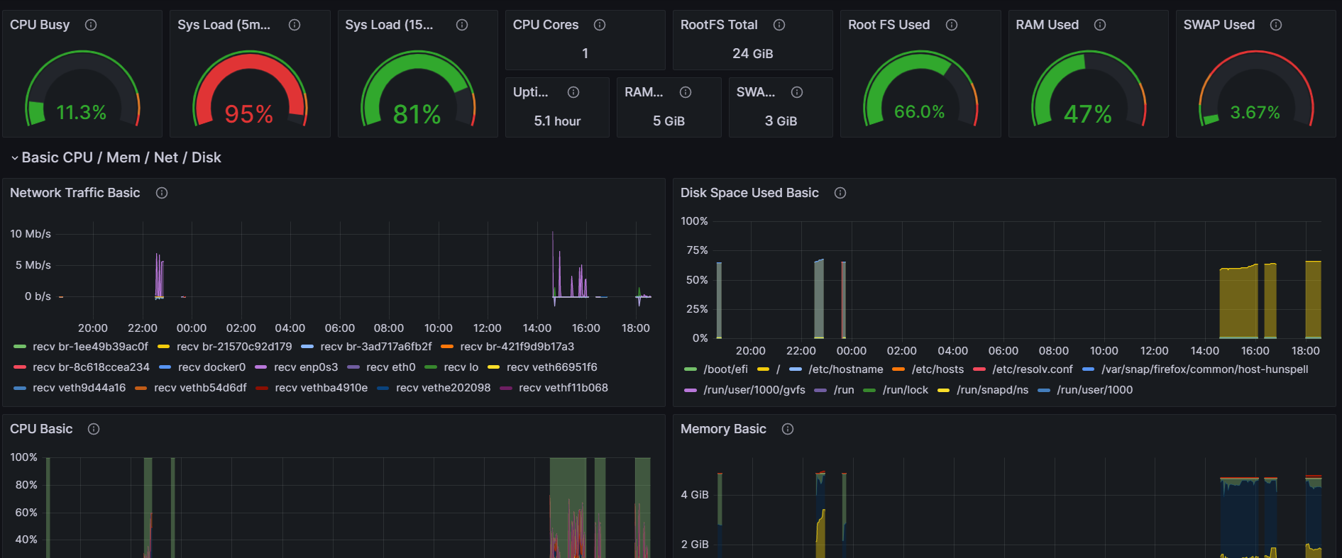 Recommended for prometheus-node-exporter the arguments ‘–collector.systemd –collector.processes’ because the graph uses some of their metrics