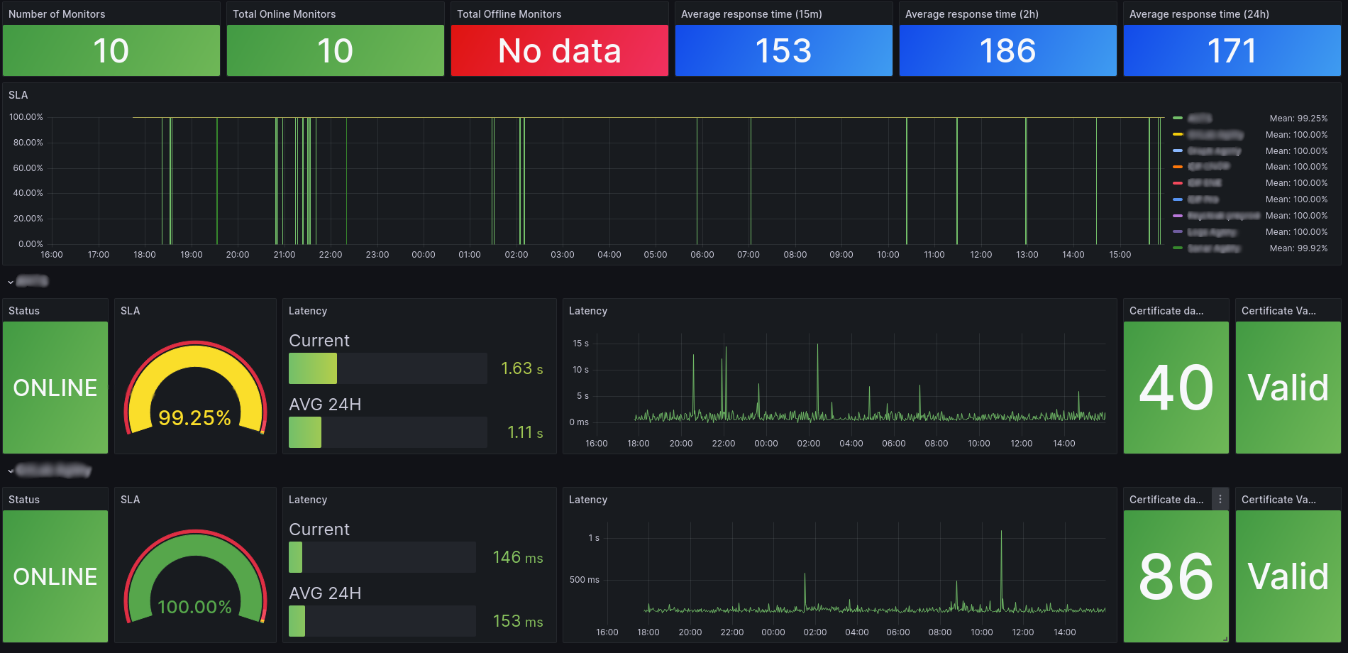 A dashboard to visualize the metrics from HTTP endpoints in [Uptime Kuma](https://github.com/louislam/uptime-kuma) Improved by https://github.com/EliottGoye