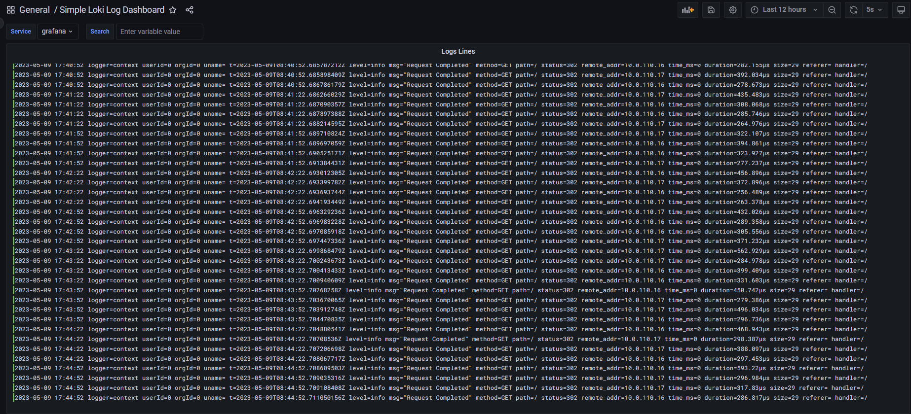 Simple Loki Log Dashboard