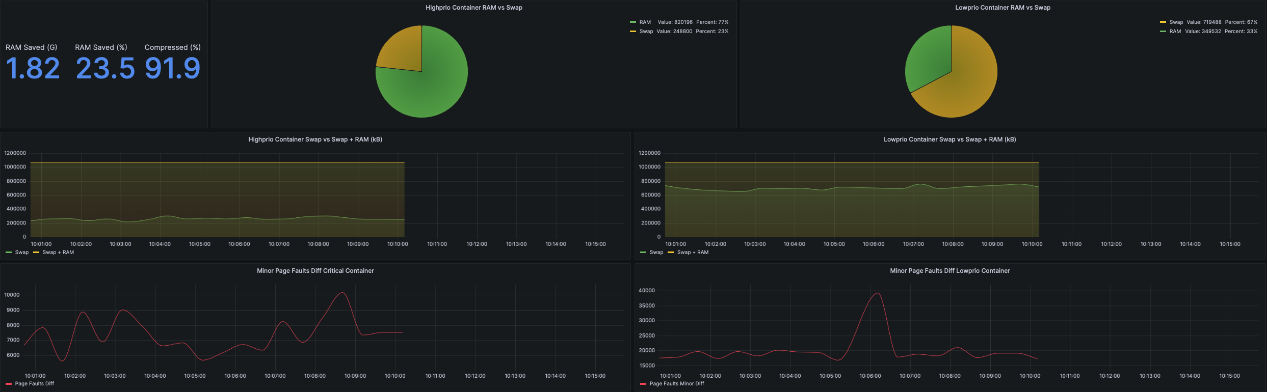 Dashboard used to showcase the effects of using Memtierd as a memory manager memory manager in your Kubernetes cluster.