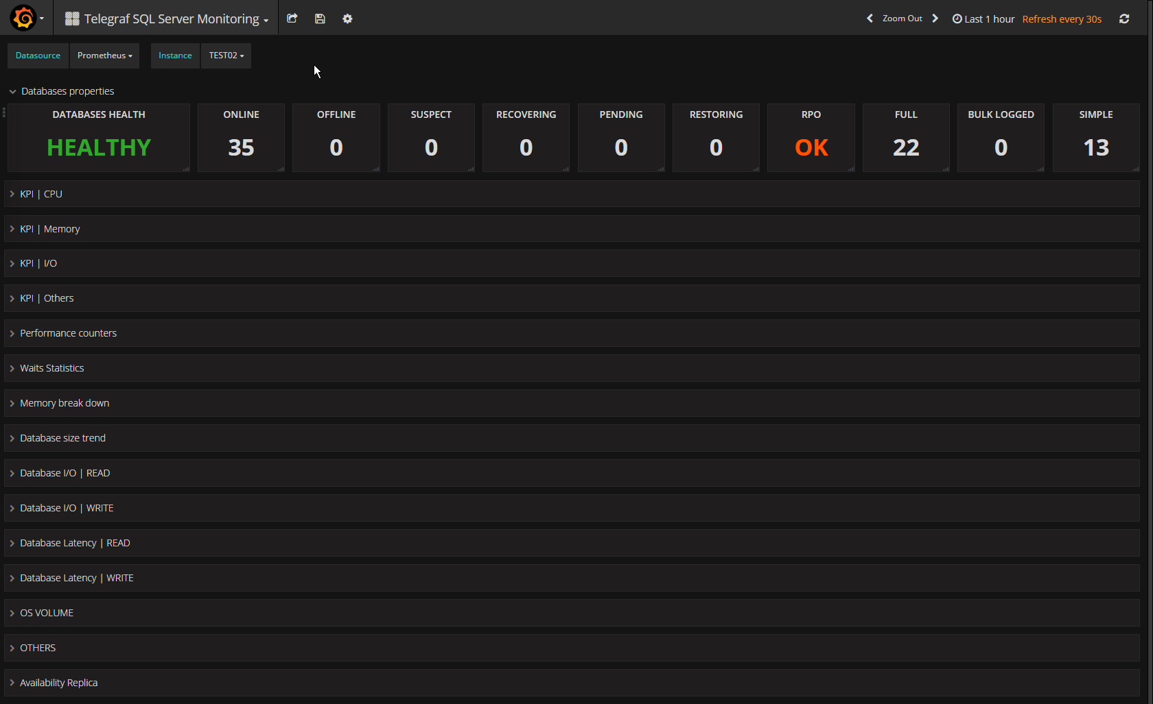 This is a Telegraf/Prometheus version of the Telegraf/InfluxDB SQL Server Monitoring dashboard. Please see link for more screenshots etc.